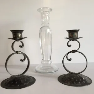 Ensemble de 3 BOUGEOIRS Verre et Métal VINTAGE