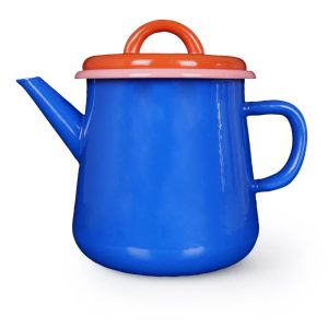 Théière bleu électrique – corail – rebord rose