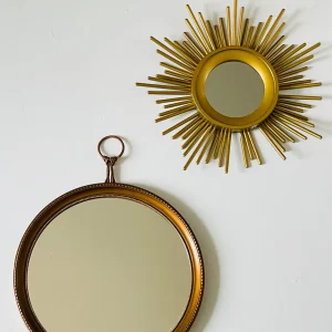 Duo de MIROIRS Dorés SOLEILS Vintage