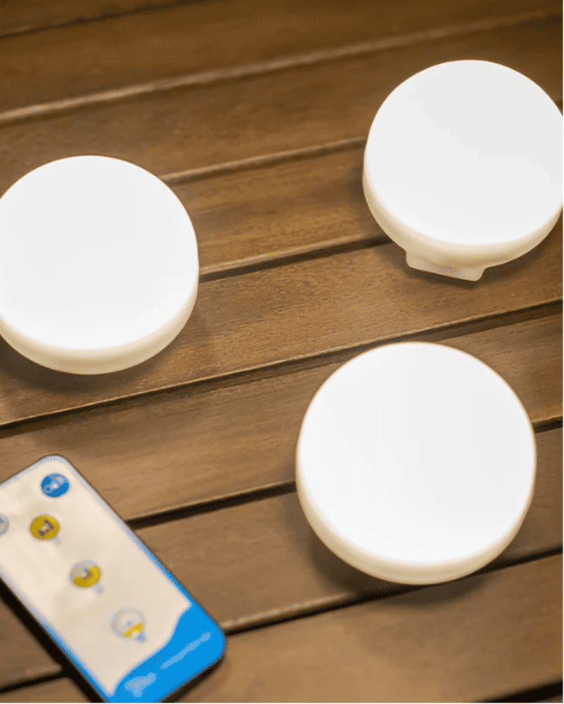 Chaque boîte de Cherry Mini comprend 3 bulbes. Chaque ampoule est dotée d’un crochet de suspension et d’une plaque métallique adhésive pour augmenter les possibilités de placement. Il comprend également une télécommande pour les allumer, les éteindre et régler leur intensité et un câble pour charger