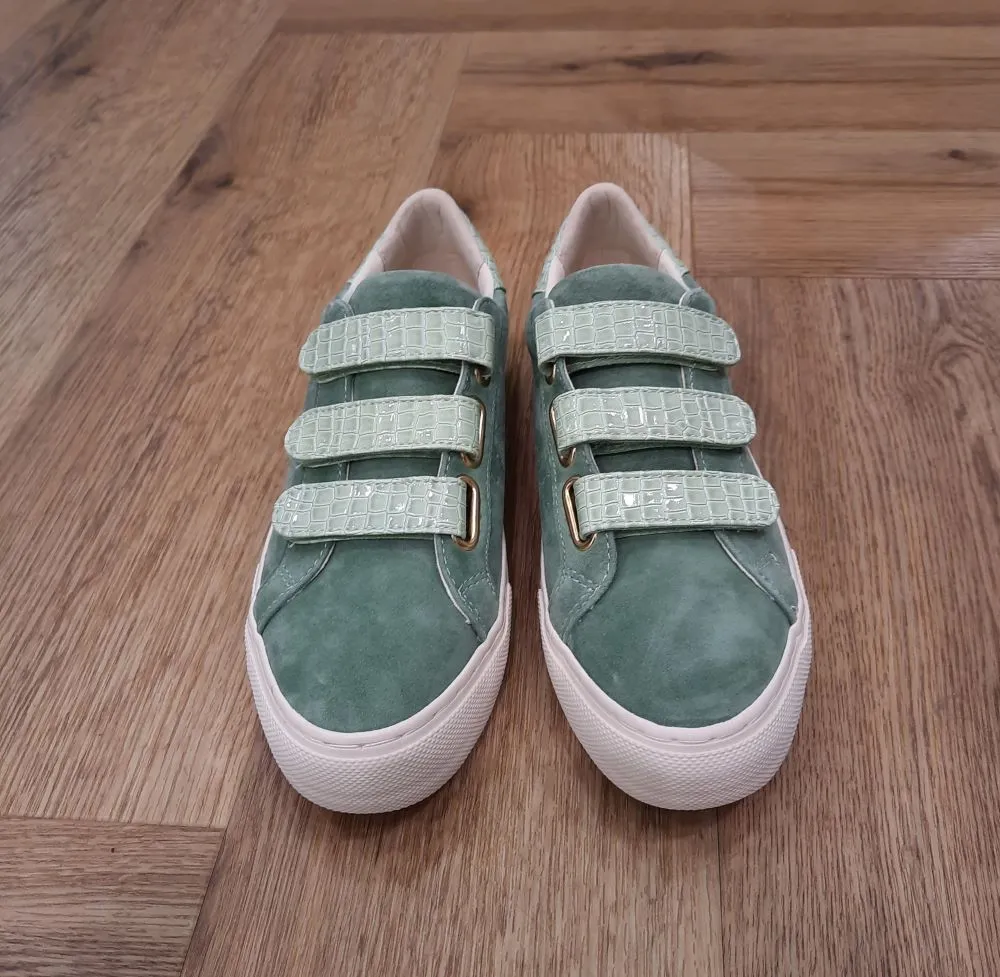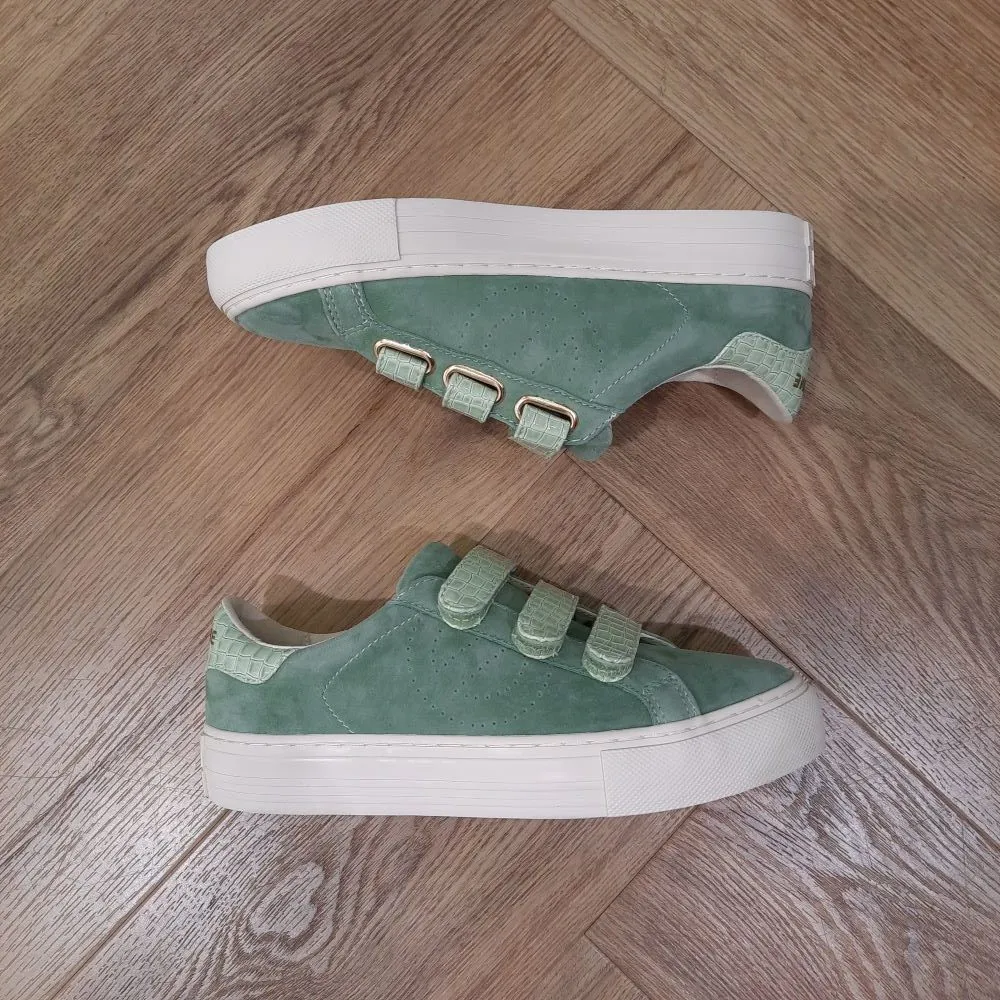 Dans une harmonie de teintes douces, l’Arcade Straps Tilleul évoque la fraîcheur délicate de la nature. Réalisée en cuir velours jade elle se pare d’un patch au talon et de straps de fermeture vernis imprimés croco couleur tilleul. Cette sneaker affirme son appartenance à NO NAME grâce à un logo perforé et une semelle plateforme. Parfaite pour accompagner les journées ensoleillées, elle sublime ton look d’une touche résolument féminine.