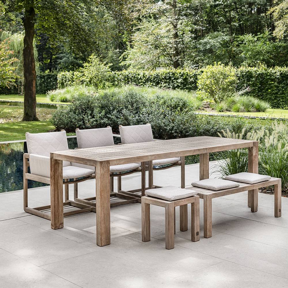 La collection outdoor de Gommaire mélange le teck, l’osier, la céramique et l’aluminium thermo laqué. Nous retrouvons une gamme complète allant des chaises aux bancs, des salons luxueux en teck à la petite décoration avec des bougeoirs, des suspensions comme la Suspension Fitz … Ils proposent également des tables, des bancs comme le Banc Sandy. Des chaises longues, des jardinières, des paniers tressés, des objets en céramique…