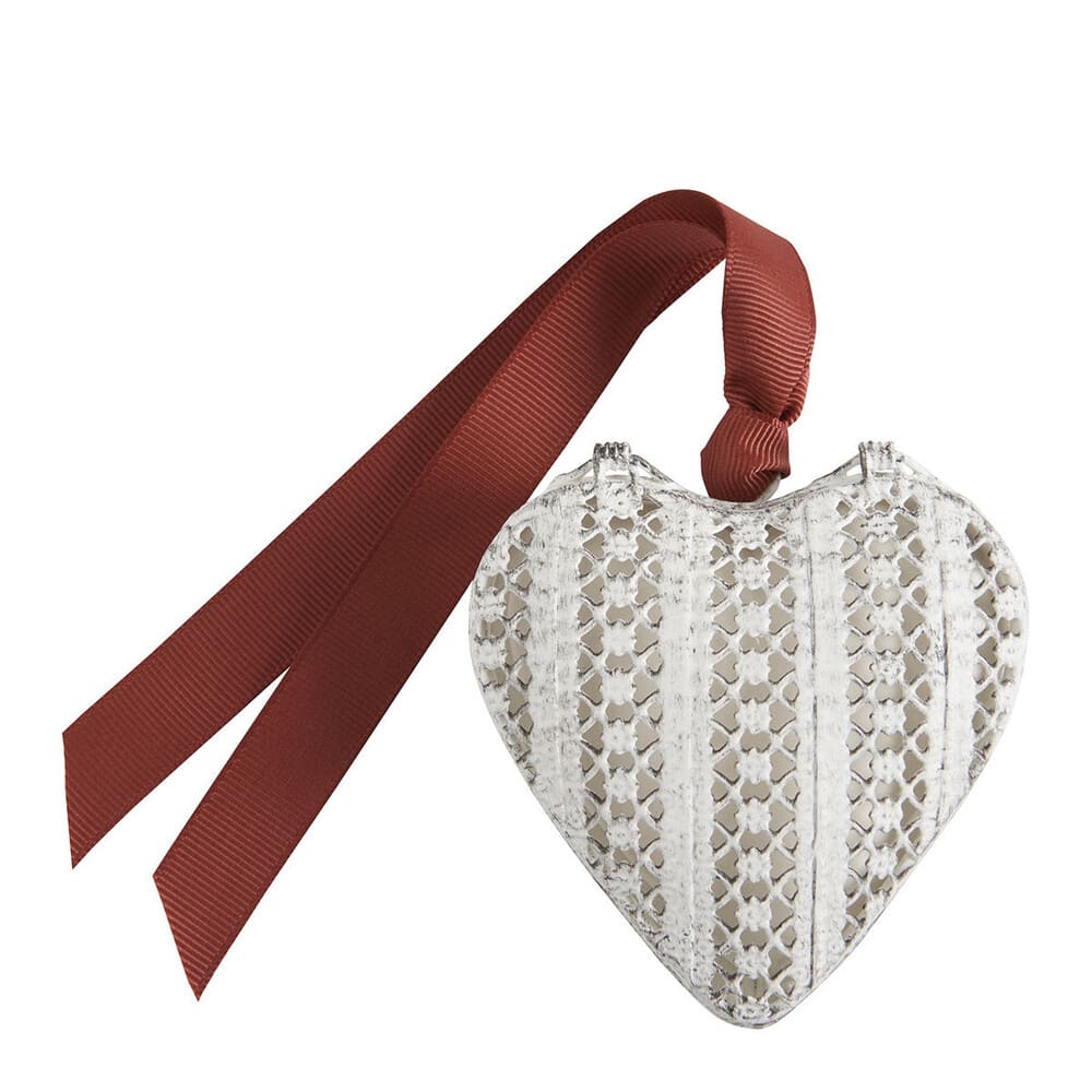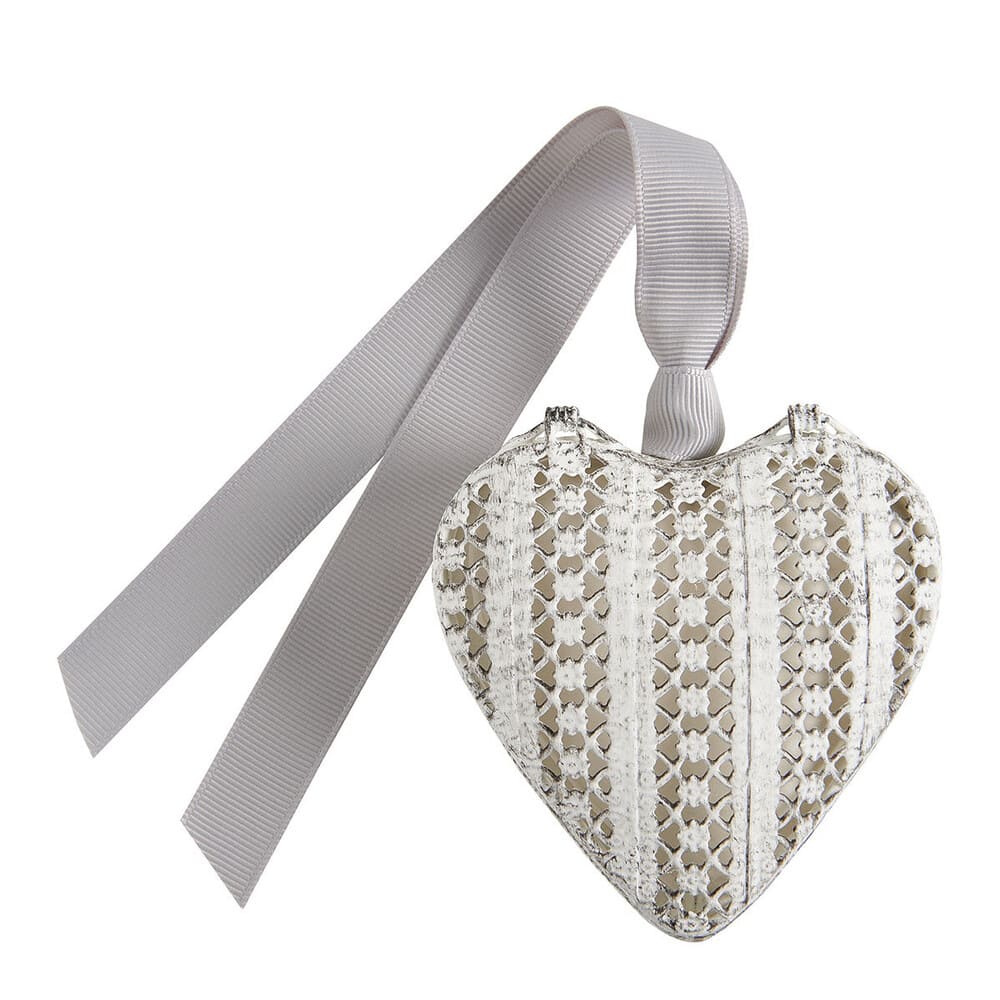 Apportez une touche de romantisme et de délicatesse à votre intérieur avec cet irrésistible bijou décoratif en métal en forme de cœur. Inspiré du charme d’antan, il révèle de sublimes détails ciselés et renferme un joli cœur en plâtre parfumé. Son délicat ruban vient parfaire cette création et lui apporte une touche féminine et élégante, fidèle à l’esprit raffiné de Mathilde M. À accrocher à une porte, suspendre à une poignée ou simplement à disposer sur un meuble.