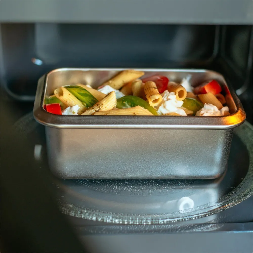 Assurez-vous que votre plat maison soit froid ou à température ambiante avant de le placer dans votre boîte repas micro-ondable et de refermer la boîte. Autrement votre plat sera comme sous-vide et cela rendra l’ouverture de la boîte difficile !