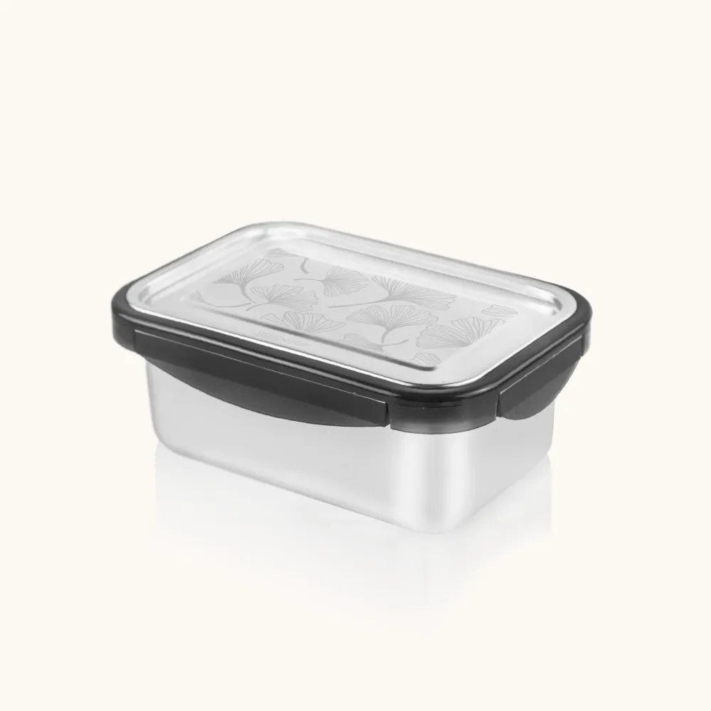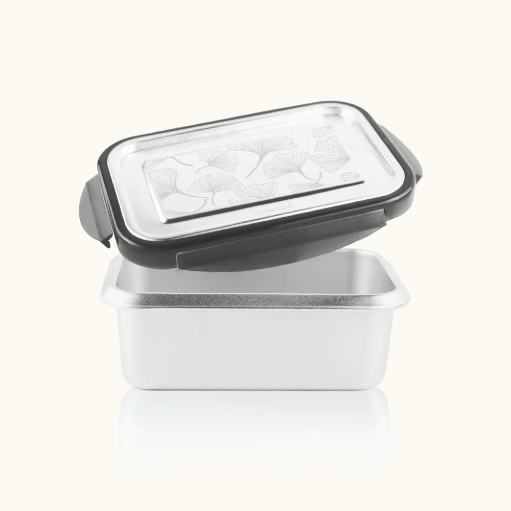 Grande boîte repas micro-ondable (sans le couvercle) en inox. Joint silicone et système de fermeture en PP. Fabriquée en Chine par une usine partenaire de la marque Gaspajoe, choisie pour son savoir-faire et son respect du droit du travail international.