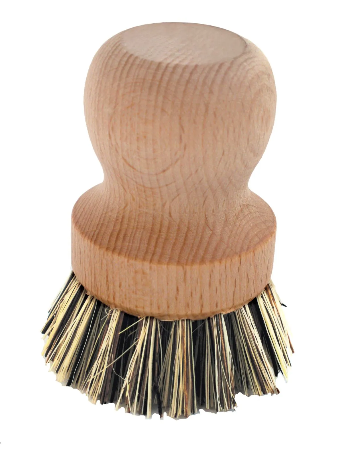 Brosse casserole en bois de hêtre et fibre végétales d’agave et de bassine. Fabriqué en Europe, bois issu de forêts gérées de manière responsable.