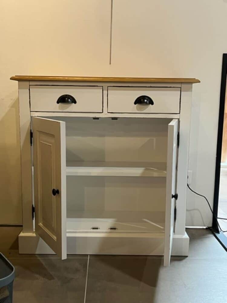 Les deux portes offrent un accès facile à vos articles tout en cachant le désordre, tandis que les deux tiroirs vous permettent de ranger vos couverts et autres ustensiles en toute simplicité. Fabriqué avec des matériaux de qualité supérieure, ce buffet garantit durabilité et résistance à l’épreuve du temps, tout en ajoutant du caractère à votre décoration.