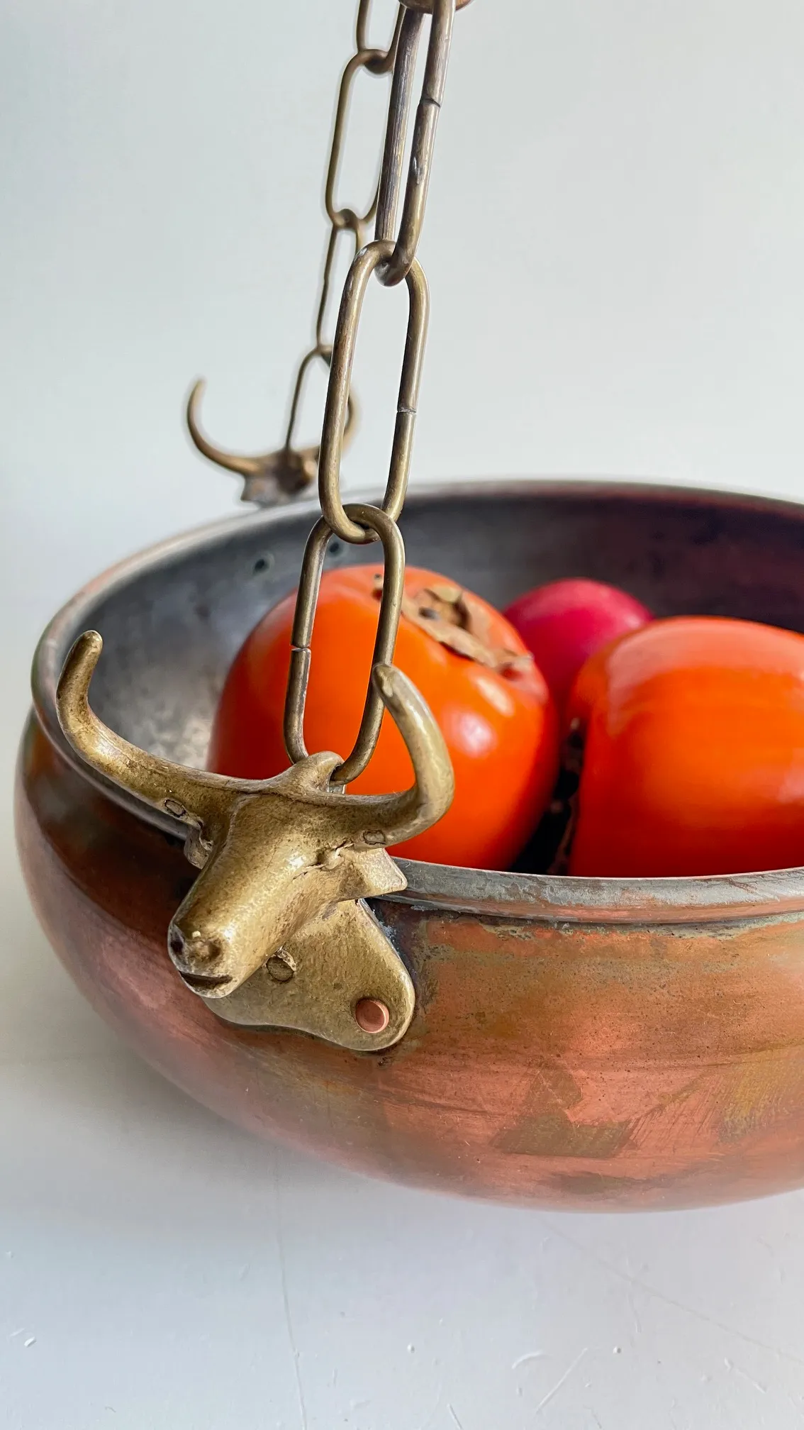 Très beau et Rare CACHE-POT Suspendu aux 3 BUFFLES d’eau Vintage, 1 jolie pièce de Caractère pour nos Plantes mais aussi pour le Rangement suspendu ou pas, comme par exemple Vide Poches, Déco pour la Salle de Bain, la Cuisine comme Coupe à fruits …