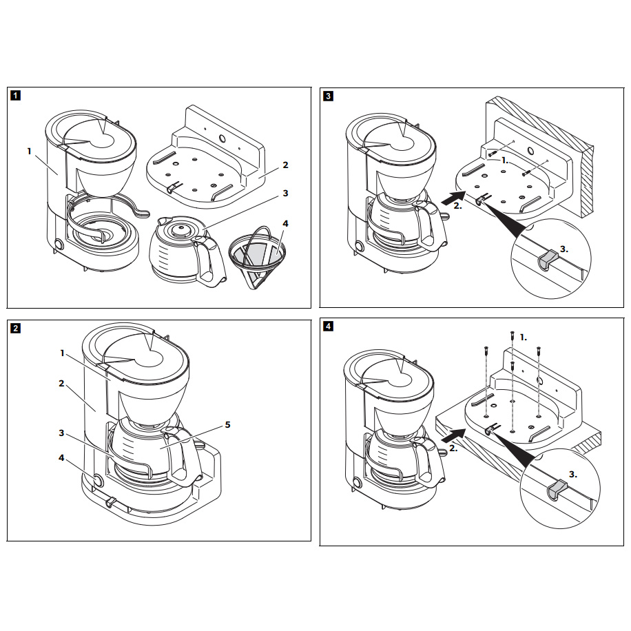 unité comprenant: verseuse en verre avec échelle de dosage, kit fixation pour montage mural ou à plat (avec système de sécurité),
