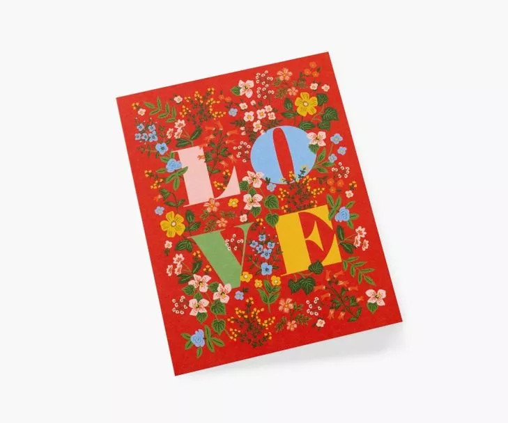 Faites passer un message d’amour autour de vous avec cette jolie carte Love Mayfair signée par la marque américaine Rifle Paper.
