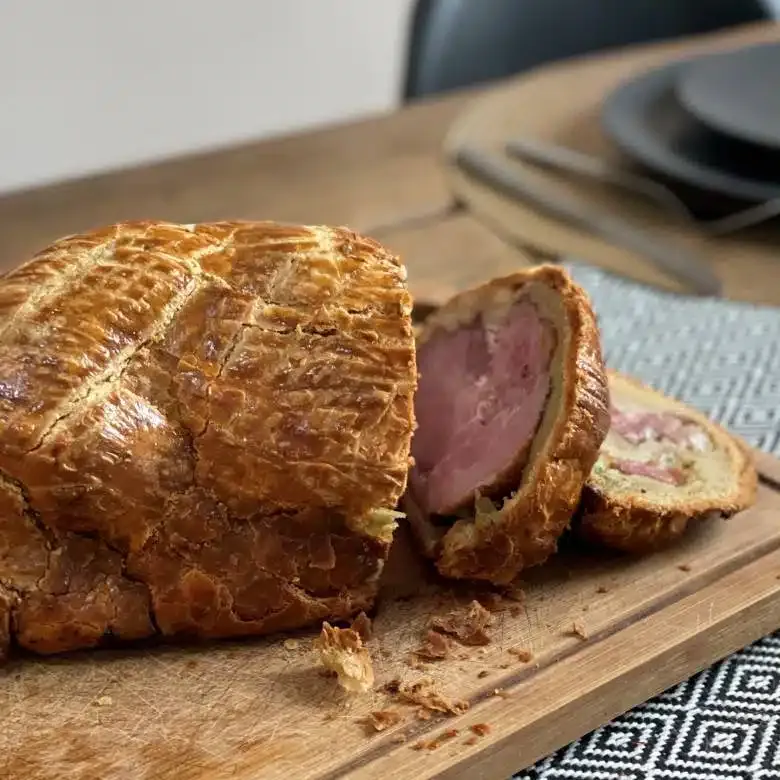 – Préparation: Le collet, souvent mariné et fumé pour intensifier les arômes, est enveloppé dans une pâte dorée. Cette croûte croustillante protège la viande tout en la gardant tendre et juteuse.