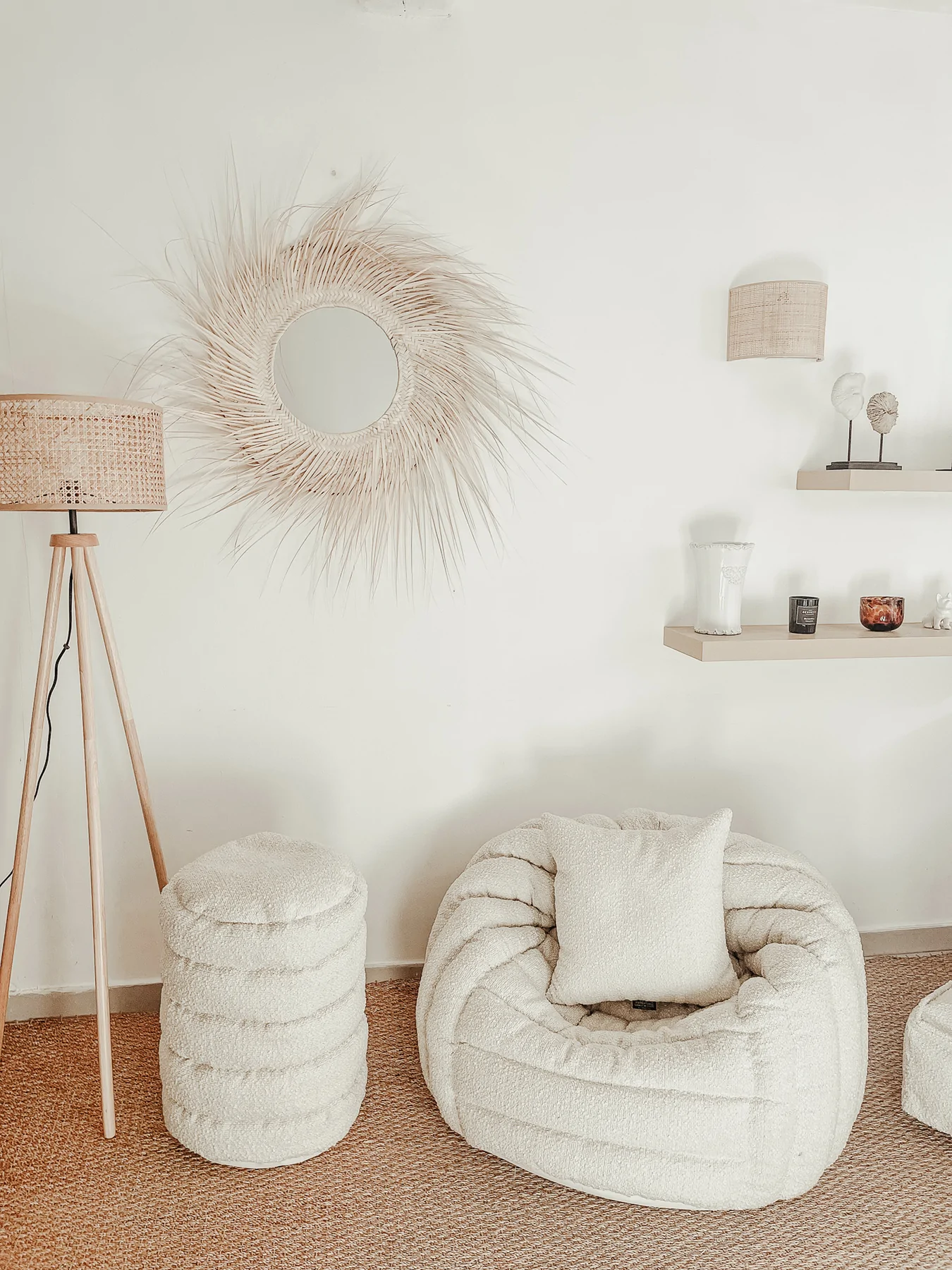 Le coussin en laine bouclée est une création de la marque Mx Home.