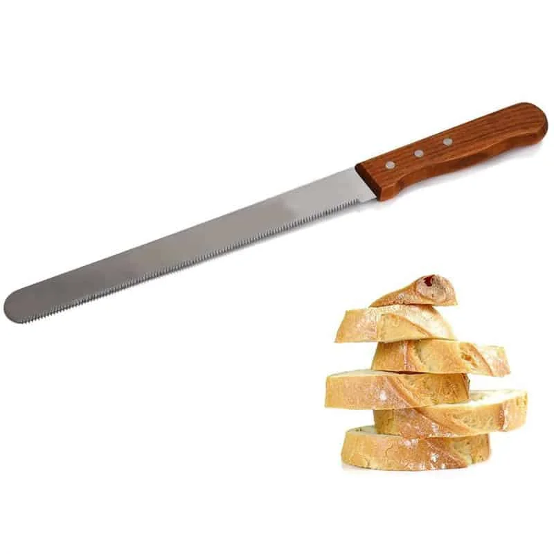 Ce couteau scie grâce à la forme de sa partie tranchante qui est en dents de scie très bien affûtés vous permet de couper efficacement vos pains et gâteaux et génoises. Rien de mieux pour des découpes chirurgicales de vos génoises en vue de faire de vos gâteaux des œuvres d’art.