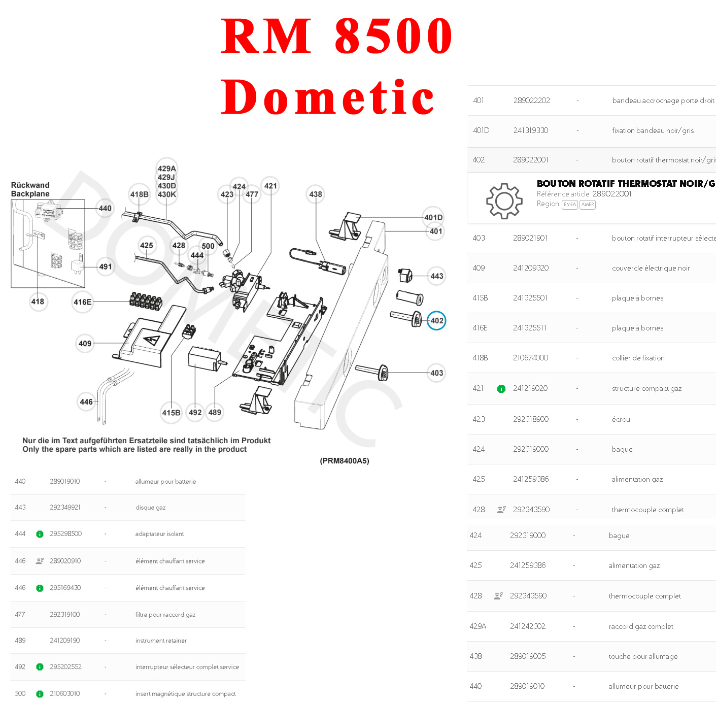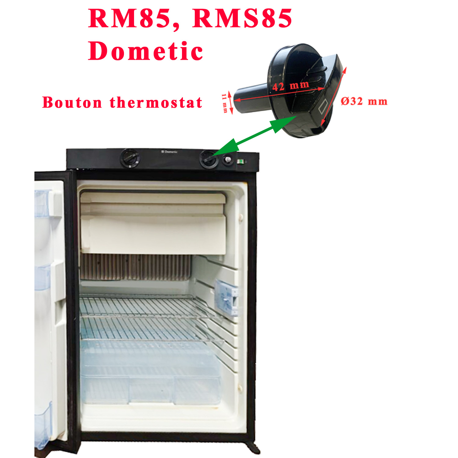 Pour vérifier si votre appareil comporte bien ce bouton, munissez vous pour vérifier la compatibilité de votre numéro de produit de votre appareil Dometic (qui se trouve sur l’étiquette signalétique blanche qui est à l’intérieur du réfrigerateur) ou contrôler sur la liste ci-dessous si votre numéro de série figure bien sur cette liste. ou contactez nous au 01.84.20.86.07