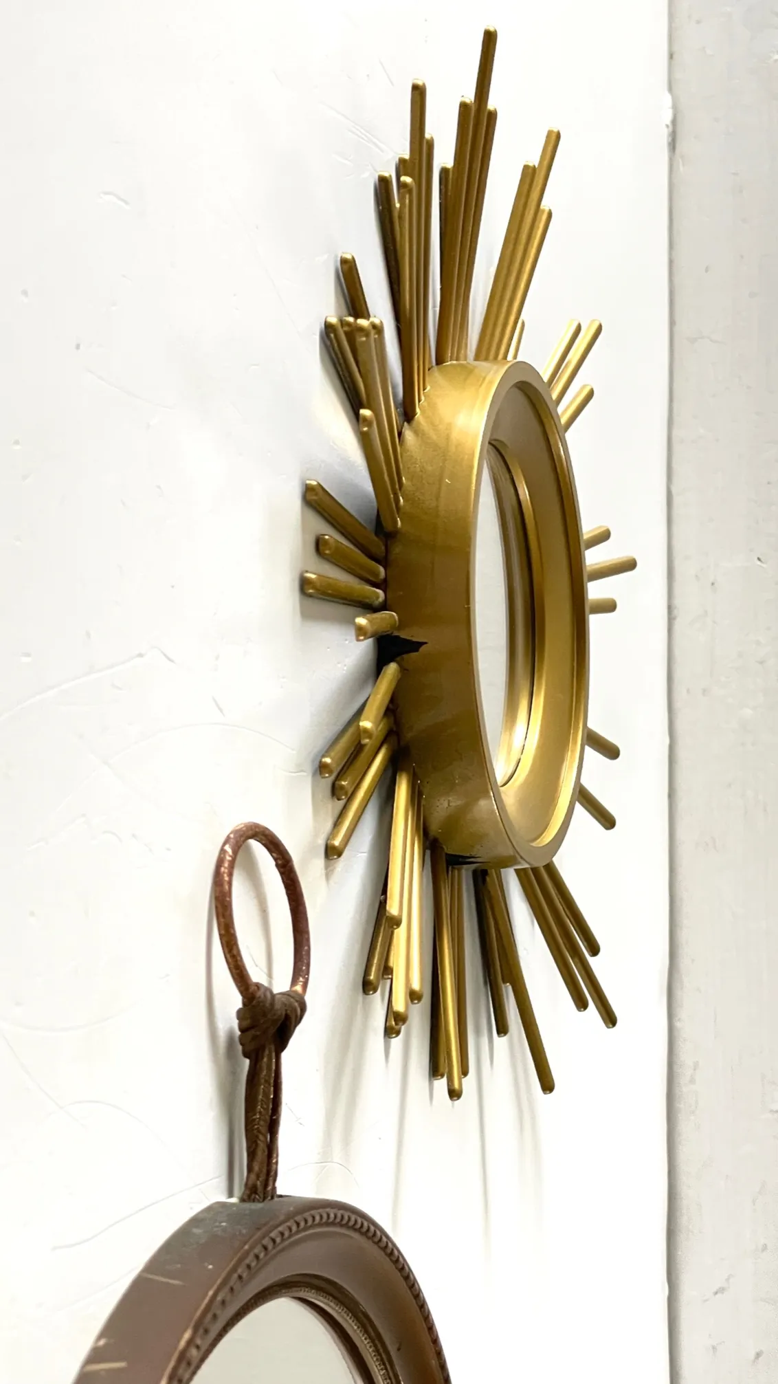 Joli Duo de MIROIRS Dorés SOLEILS Vintage. Pour une Déco Chic et Chaleureuse, vos Accumulations murales, vos Cabinets de curiosités, vos Cadeaux inspirés .. ils nous Plaisent !