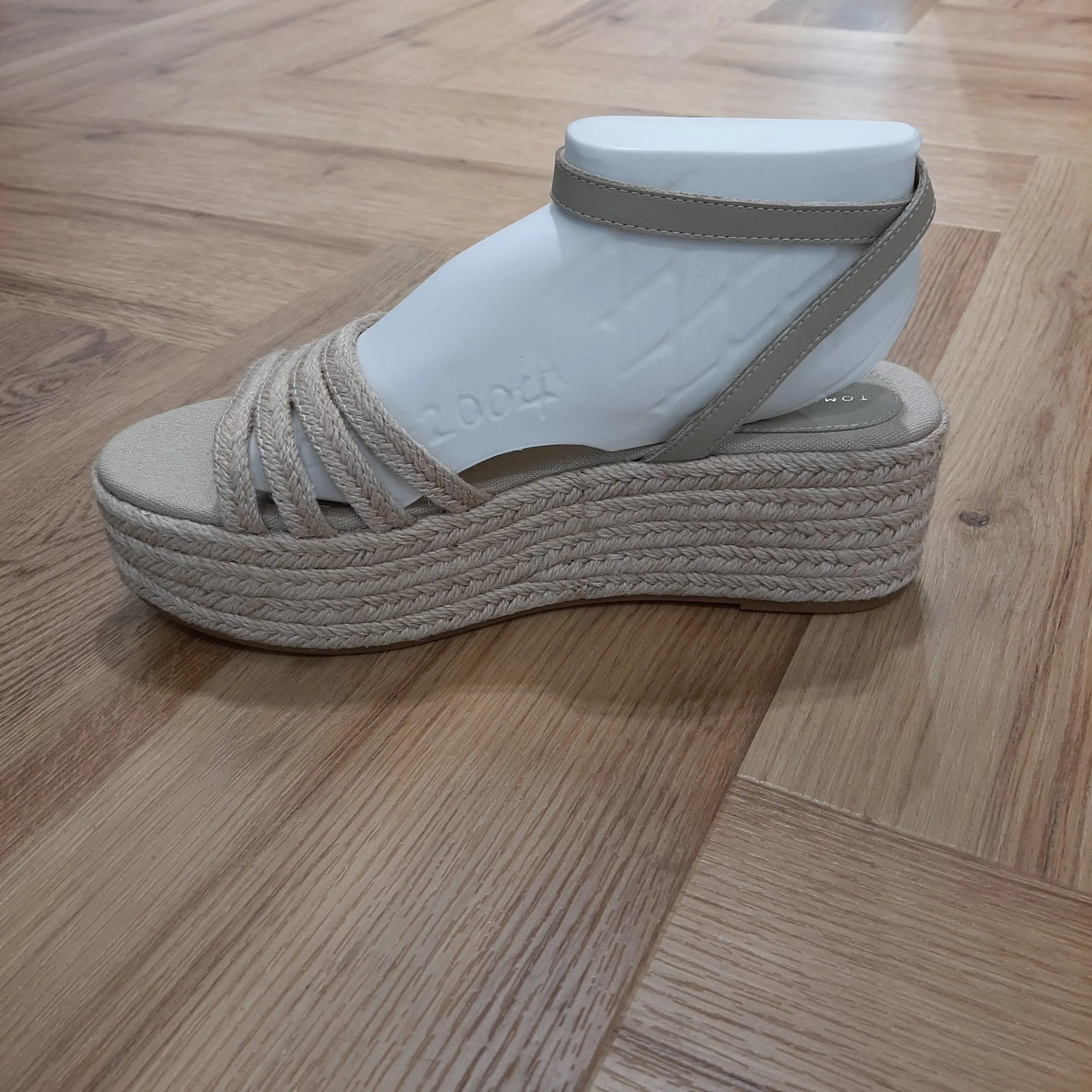 Confectionnées en cuir durable et en lin, ces sandales compensées au look sophistiqué sont idéales pour l’été.