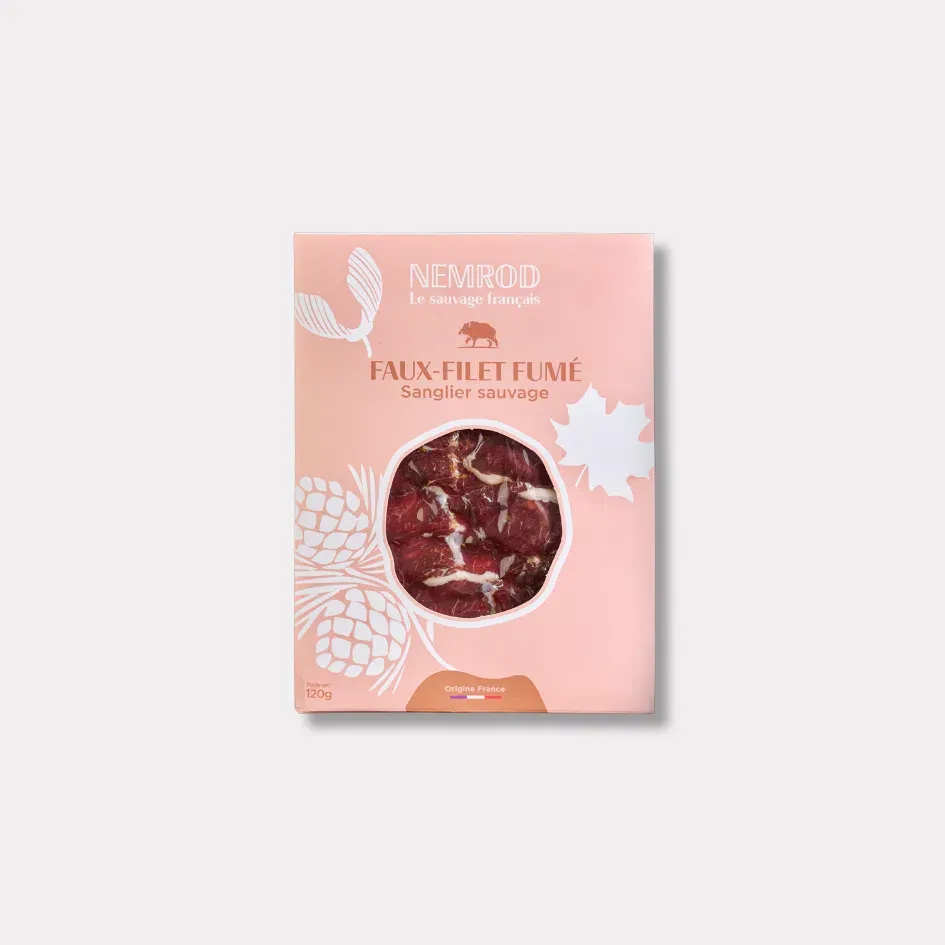 Produit rare et racé, ce faux-filet de sanglier sauvage, fumé au bois de hêtre et affiné en Alsace, s’adresse aux amateurs de charcuterie sèche d’exception. Préparé à partir de gibier issu de la chasse locale française, il est tranché finement pour révéler toute sa richesse aromatique, entre intensité et subtilité.