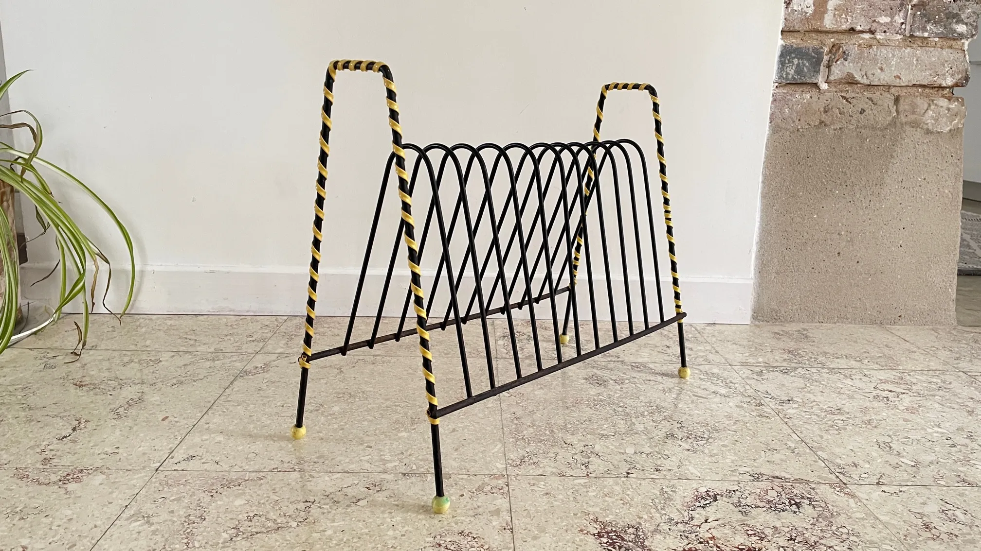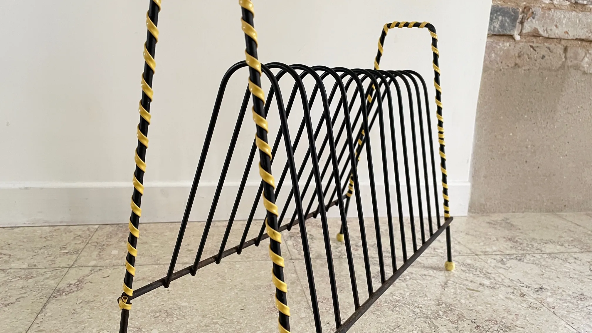 Original et Géométrique, un grand RANGE Disques VINYLES Rétro en métal et Scoubidou Vintage. Parfait pour vos 33 et 45 Tours … et pour vous les Restaurateurs, une bonne Idée pour Présenter vos Menus, les dossier sur le Bureau, les livres et dessins des petits … on est très très Fan !