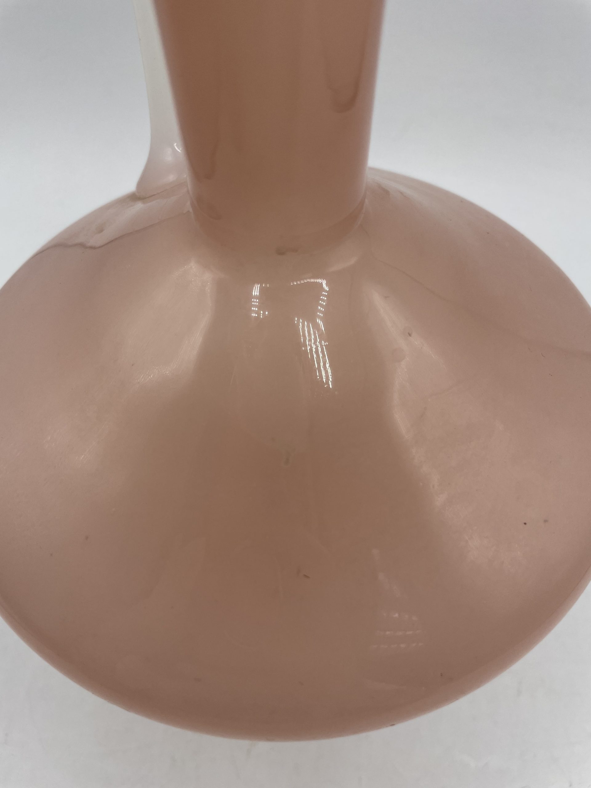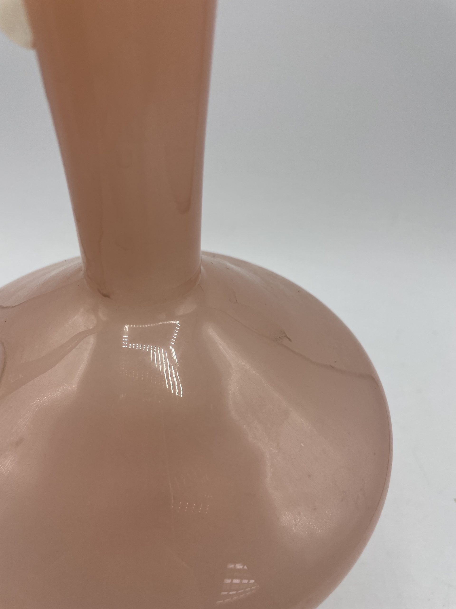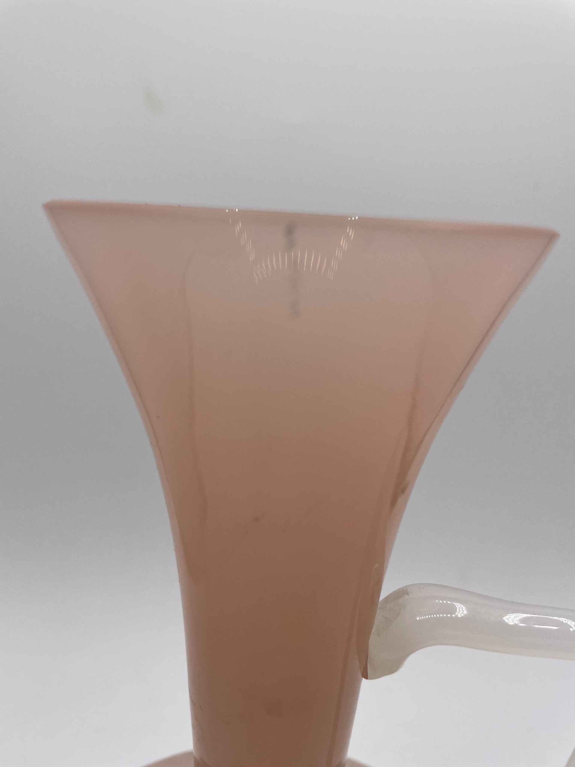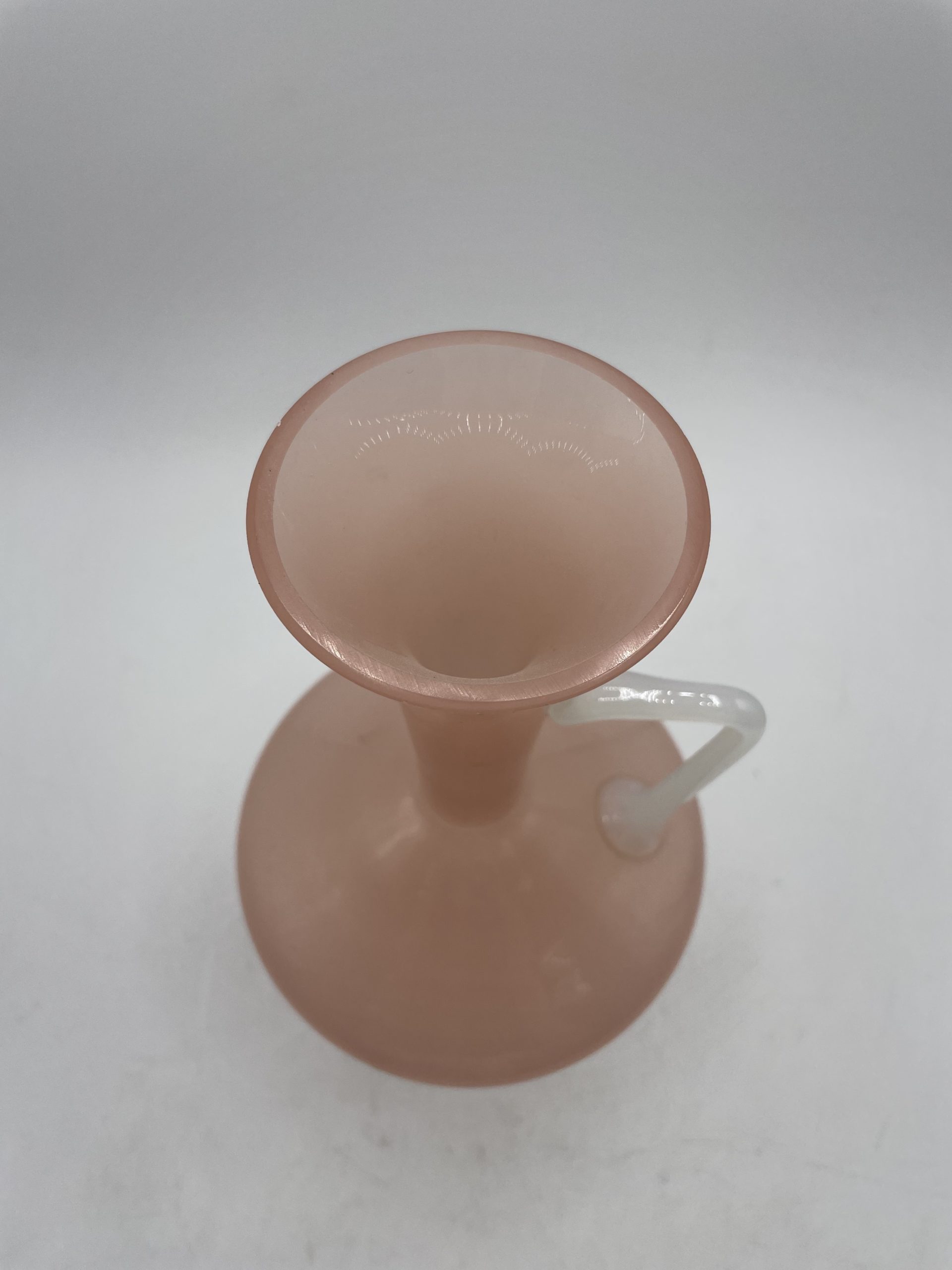 On adore ce joli vase vintage en opaline en forme de carafe. De couleur rose bonbon, le pied du vase et la anse sont de couleur blanche ce qui crée un joli contraste très doux. Soufflé à la bouche, il s’agit d’une pièce unique ! Vintage, des traces d’usure sont à prévoir (cf photos ) jolies marques du temps passé. Un joli vase parfait pour décorer une table ou un joli salon !