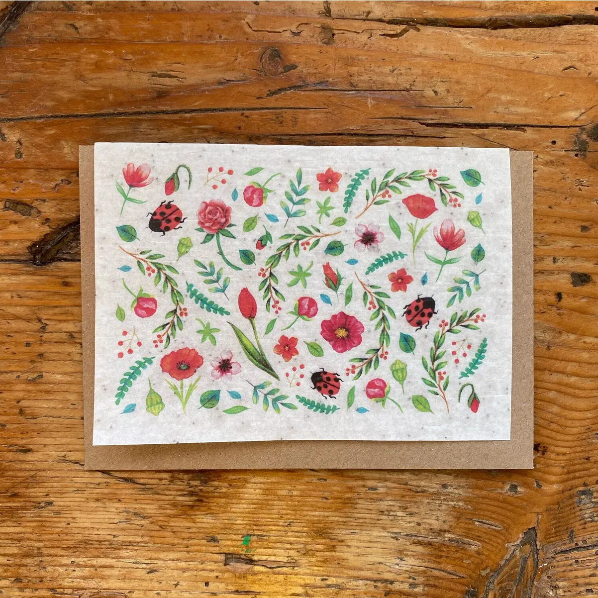 Fabriquée en France. Papier 80g biodégradable ensemencé de petites graines. Enveloppe kraft incluse.