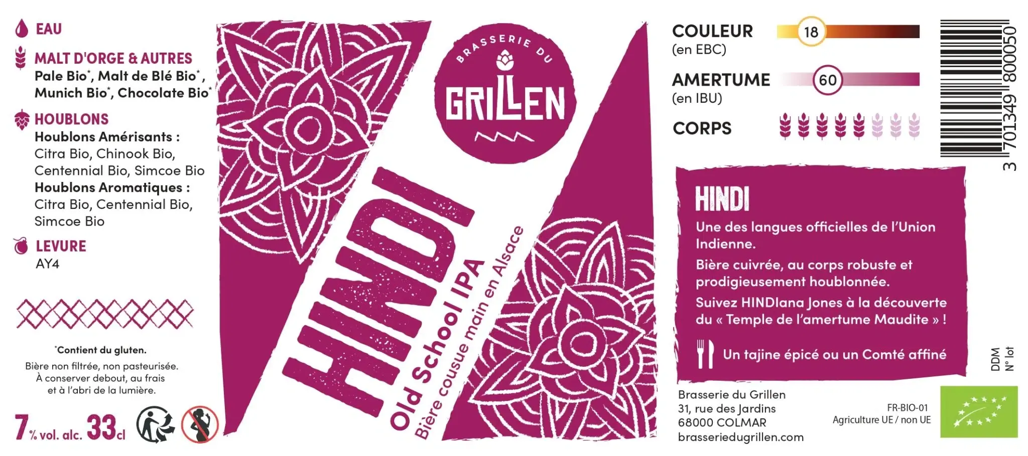L’amertume est bien présente, mais elle est équilibrée par une texture soyeuse et une carbonatation vive, ce qui en fait une bière rafraîchissante. La Hindi Old School IPA est idéale pour les amateurs de bières authentiques qui recherchent une expérience gustative robuste et pleine de caractère. Parfaite à déguster lors de moments de partage ou pour accompagner des plats riches et savoureux, elle saura séduire les connaisseurs comme les curieux.