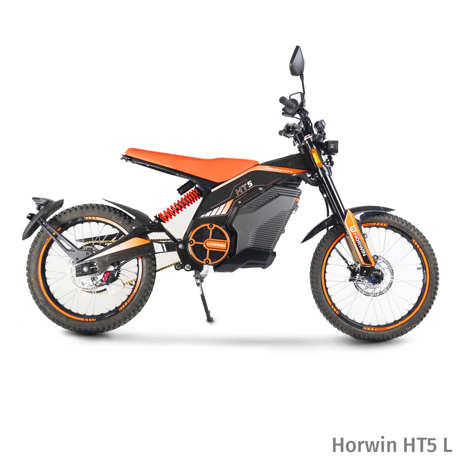 Sportives et joueuses, les Horwin HT5 sont des motocross électriques équivalents 125 cm3. Cette gamme est composée de deux modèles : la HT5 R et la HT5 L. Elles sont homologuées pour circuler sur la voie publique et demandent le permis moto (A2 ou A), le permis 125 (A1) ou le permis B assorti de la formation dite des 7 heures à réaliser en auto-école.