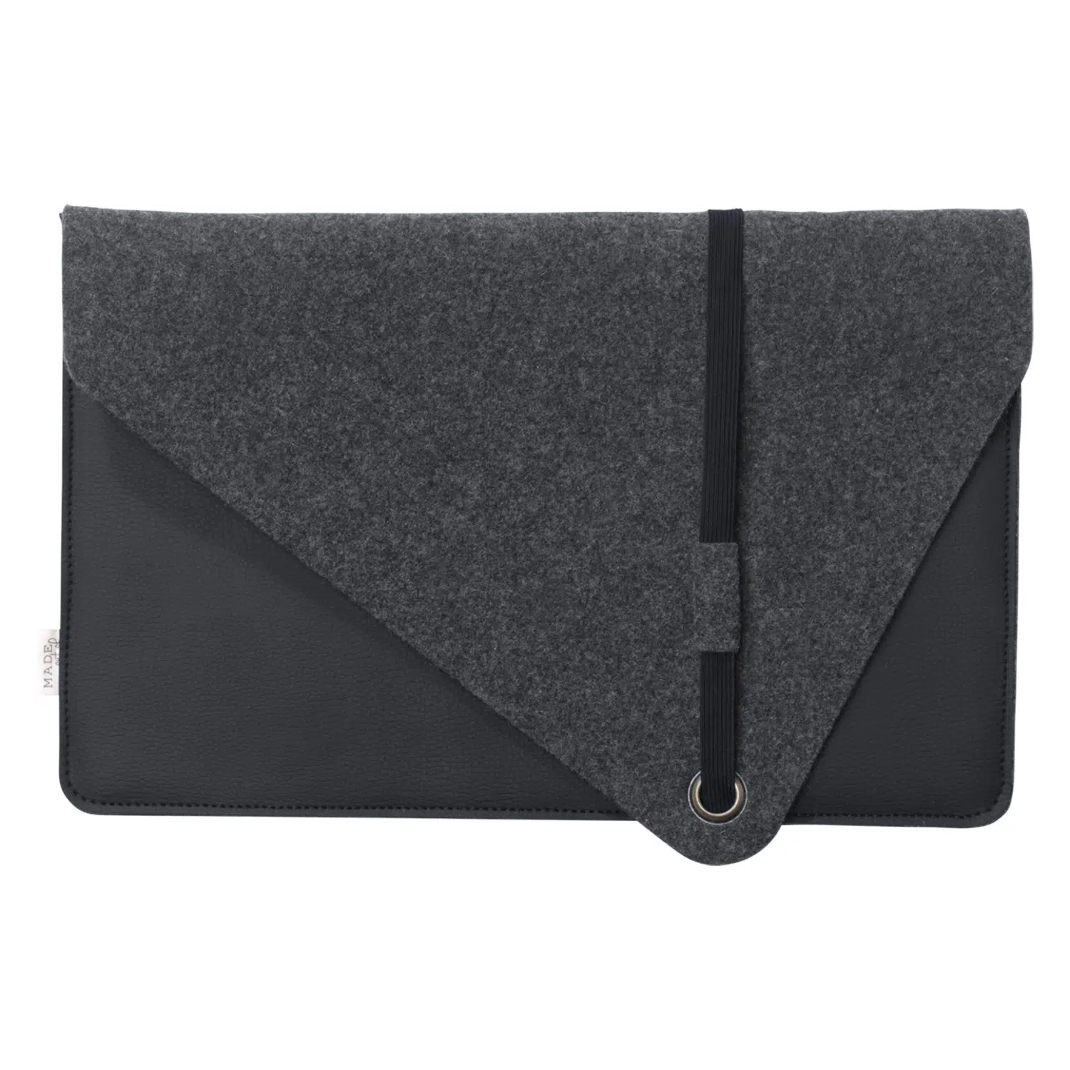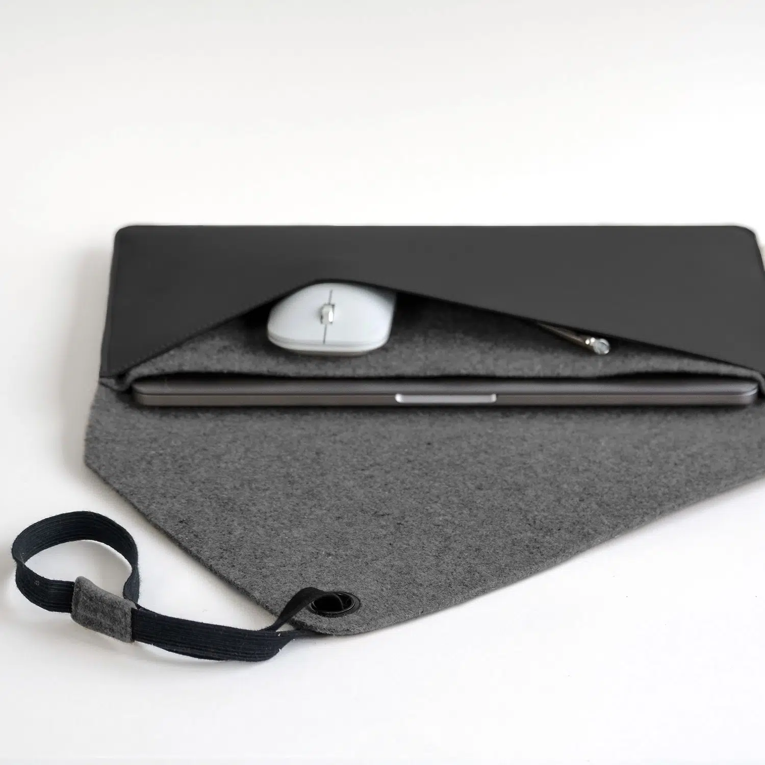 Cette housse pour ordinateur portable est conçue pour protéger efficacement vos appareils tout en mettant en avant un design écoresponsable. Fabriquée en simili cuir de pomme, un matériau innovant à base de résidus de pommes, et en feutre de laine recyclée, elle allie esthétique et durabilité.