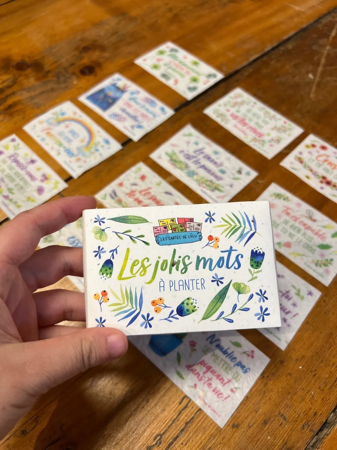 Chaque jour façon calendrier de l’avent ou 2 fois par mois pour tenir sur toutes l’année, piochez un petit mot inspirant et positif puis plantez-le pour faire pousser de jolies fleurs ou de bons légumes ?
