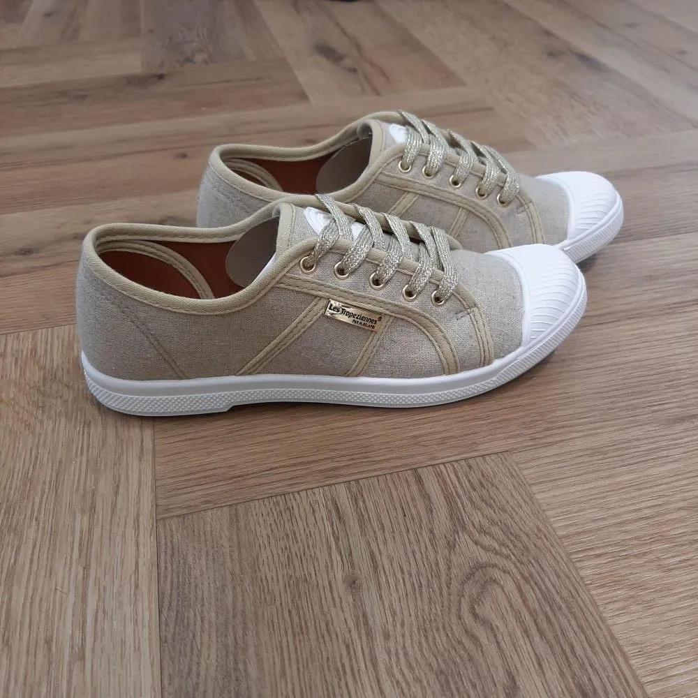 Cette chaussure Les Tropéziennes Cloruni Beige Or possède un chaussant normal. Elle est en toile, très pratique et confortable peut être portée quotidiennement. Elle s’assortira avec l’ensemble de votre dressing car elle est sobre.