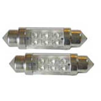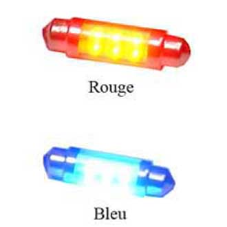 Lot de 2 ampoules (paire de navettes) 6 leds 11 mm x 38 mm bleu ou blanc ou orange ou rouge 12 ou 24 V.