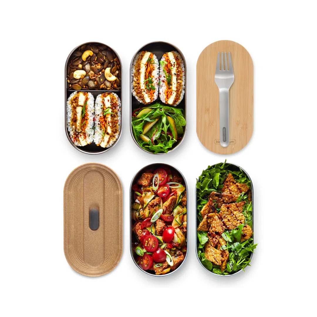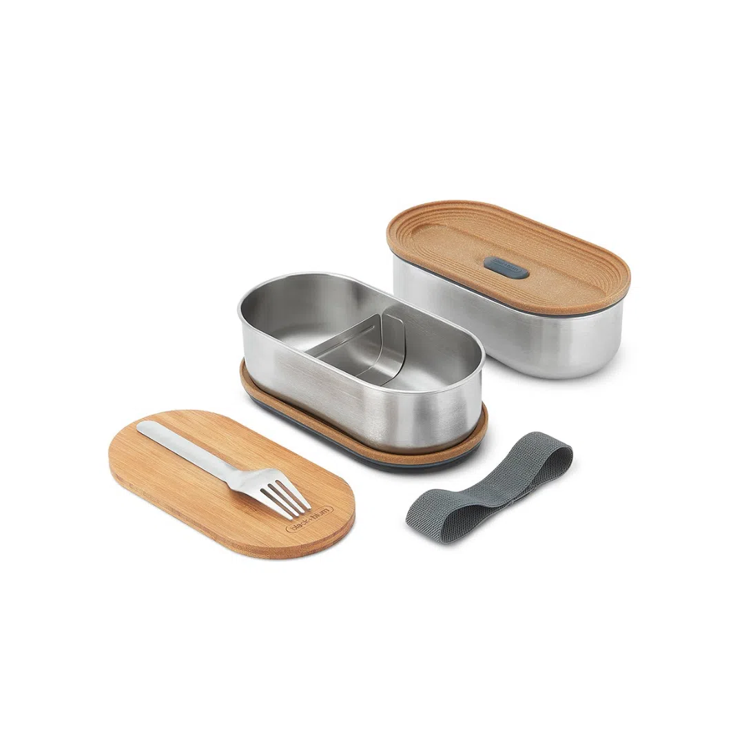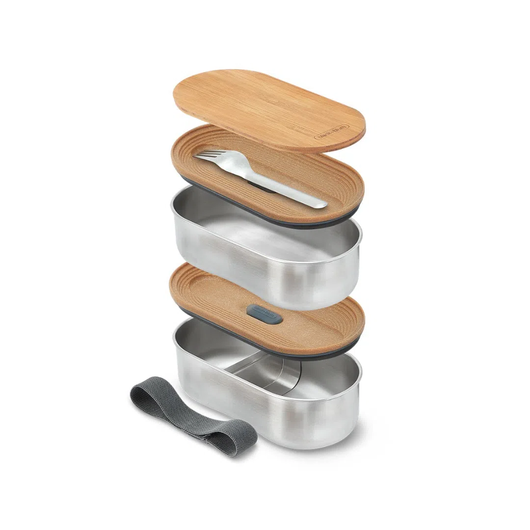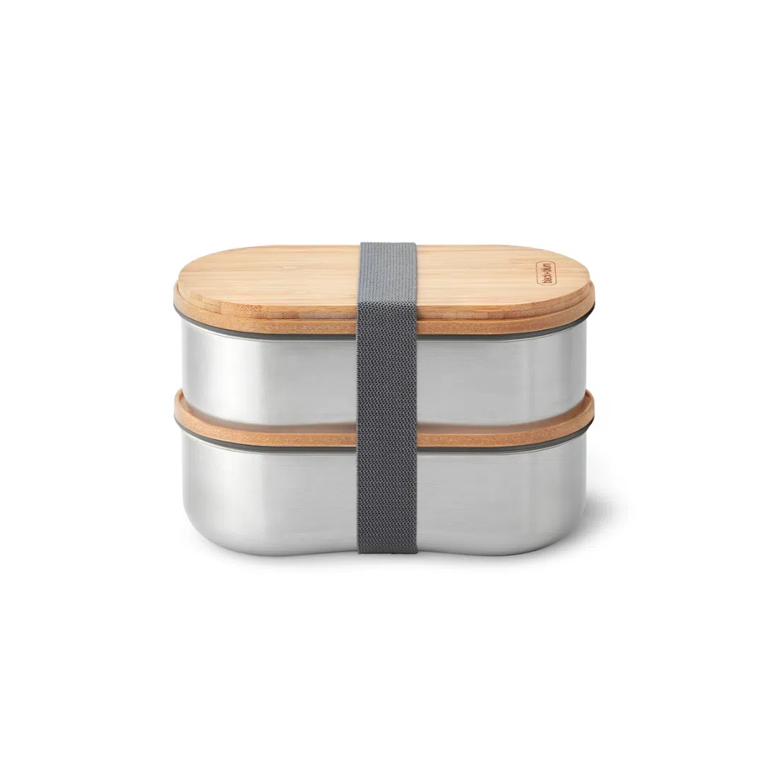 Lunch box bento en acier inoxydable, inspirée du Japon, conçue pour être étanche et élégante. Composée de deux boîtes empilables de 500 ml chacune, elle allie tradition japonaise et design contemporain. Le couvercle en bambou antibactérien intègre une fourchette en acier, dissimulée sous le couvercle pour un gain de place optimal. La construction en acier 304 (18/8) assure résistance à la corrosion, et le contact direct avec les aliments exclut tout plastique. Les matériaux utilisés incluent : acier inoxydable, polypropylène renforcé de fibres de bois, silicone, nylon et bambou naturel. Adaptée pour ranger déjeuner, en-cas ou combinaisons repas. Sa conception modulaire permet une utilisation des boîtes séparément ou ensemble. Simple à nettoyer, durable et pratique.