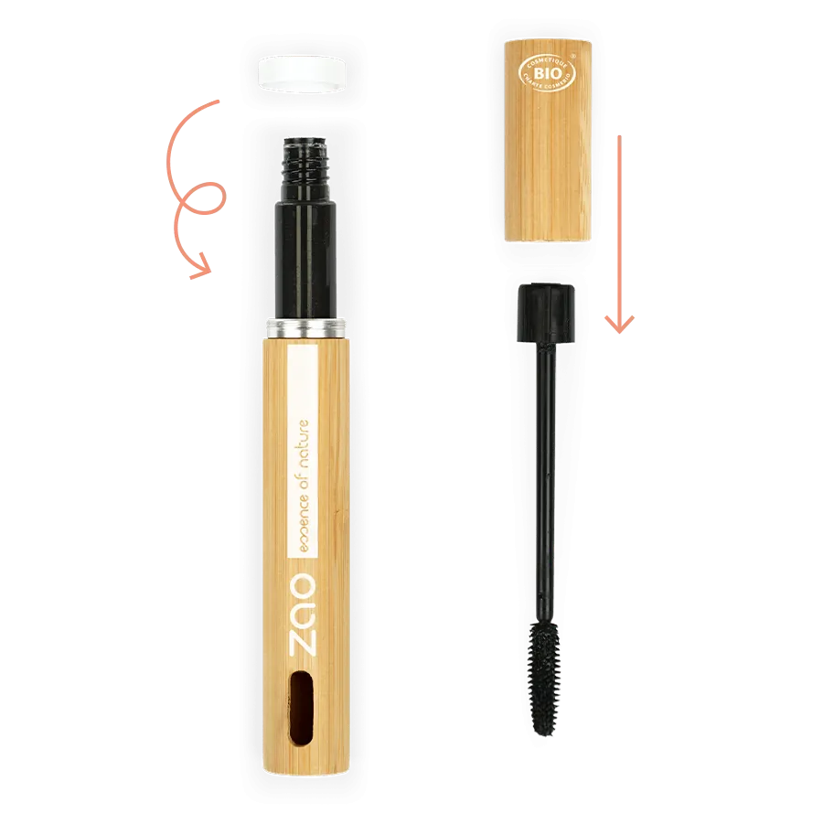 Mascara bio, 100 % d’origine naturelle, végan et rechargeable.
