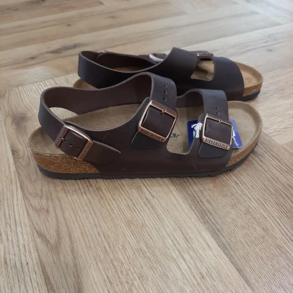 La Milano Habana de BIRKENSTOCK désormais disponible dans une élégante finition cuir. Pour cette sandale extravagante, une importance particulière a été accordée à des matières de grande qualité et à une finition d’exception. Garantes d’un maintien optimal, les Milano vous confèrent le soutien dont vous avez besoin, à chaque pas. Le secret de ce modèle ? Sa tige légèrement plus compacte dotée de trois brides, dont une large au niveau du talon. La tige est confectionnée à partir de nubuck huilé particulièrement épais, dont les bords n’ont pas été lissés.