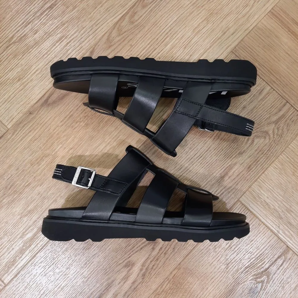 Le modèle Neosinead Black est une paire de sandales pour femme composée d’une tige et d’une doublure en cuir de couleur noir. Ces sandales vous garantissent confort et robustesse grâce à leur semelle intérieure en 100% synthétique et leur semelle extérieure en EVA. Le modèle Neosinead s’adapte aux pieds de toutes les femmes avec sa fermeture à boucles.