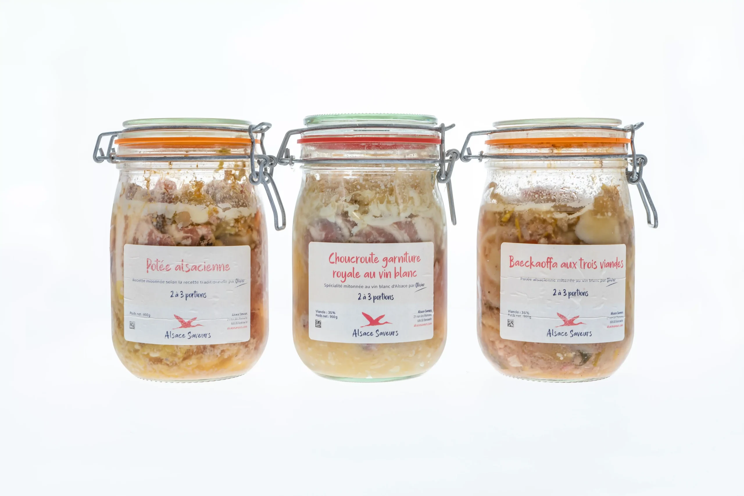 Afin de vous faire découvrir les recettes emblématiques de la gastronomie alsacienne, Alsace Saveurs vous propose ce lot de trois bocaux à un prix avantageux.