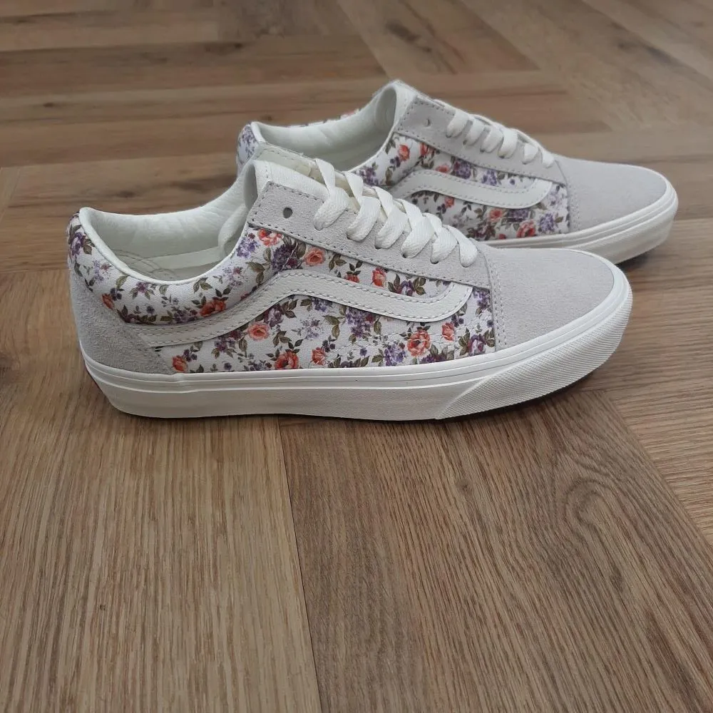 Les sneakers Vans Old Skool Vintage Floral sont des sneakers originales et colorées. La tige beige en cuir et textile est agrémentée d’un motif floral multicolore pour un look unique et frais. La semelle en caoutchouc offre un excellent confort et une adhérence optimale pour une utilisation quotidienne.