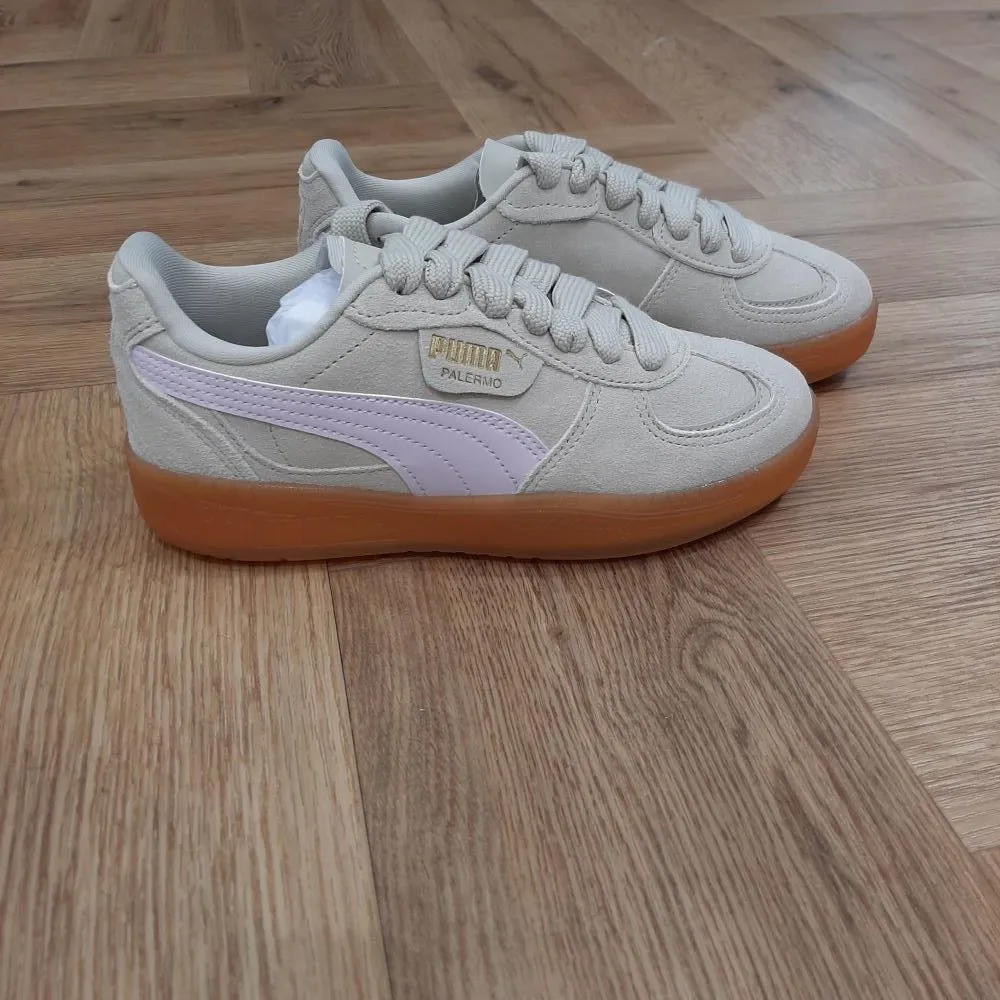 Tout droit sortie de nos archives, voici la Palermo Moda Desert Lila. En effet, lancée dans les années 80, la légende de la culture Terrace fait son grand retour pour les jeunes fans, cette fois en version Moda. Tout d’abord, avec sa fameuse forme en T et sa semelle en gomme classique, cette version présente une tige en daim. Puis, elle possède une bande PUMA Formstrip en synthétique et un outillage translucide. Pour conclure, une basket à adopter d’urgence pour un outfit tendance et élégant. Tu peux aussi l’habiller de façon plus décontractée pour obtenir un look plus chill.