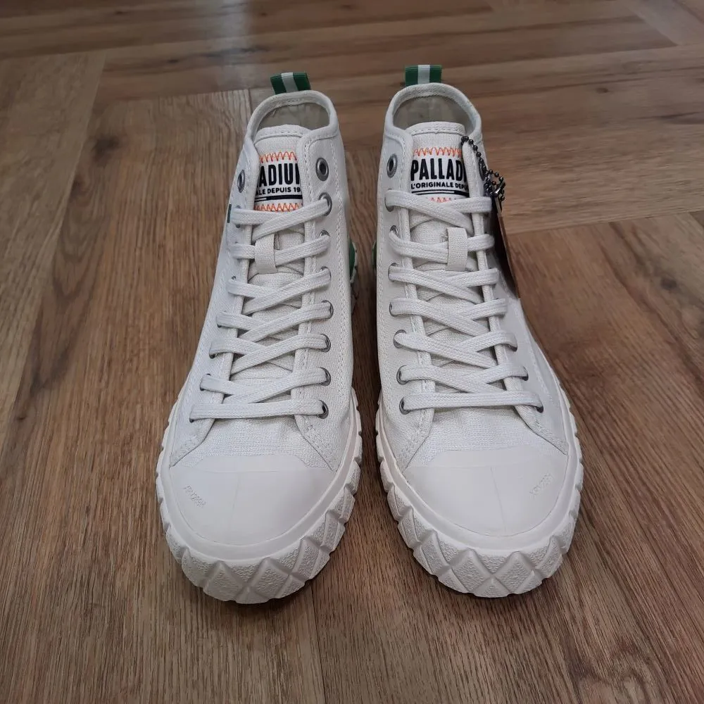 La Palla Ace Mid Chukka Org est un clin d’œil à notre histoire, s’inspirant de nos riches archives de sport. Chaque pas sur sa semelle extérieure en losange agrandi fait écho au losange caractéristique de nos mythiques bottes Pampa, tandis que le drapeau tricolore qui orne fièrement le côté rappelle l’héritage français profondément enraciné de Palladium. Cette saison, découvrez la Chukka dans une nouvelle hauteur, magistralement conçue comme un hybride entre basket et botte, pour les journées les plus ensoleillées. Dotée d’une semelle extérieure résistante associée à un bout protecteur en caoutchouc et drapée d’une toile lavée douce et biologique, la Palla Ace fait de chaque foulée une fusion de confort, de respect de la planète et de style sans effort. Célébrer le passé, marcher vers l’avenir.