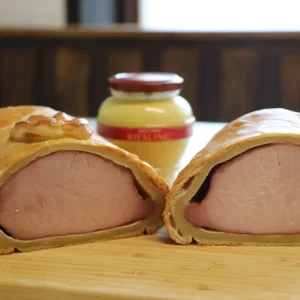 Sa croûte croustillante renferme un trésor de saveurs, où viandes fines, aromates parfumés et gelée savoureuse se marient en une harmonie exquise. Élégant en apparence, audacieux en goût, le pâté en croûte est une œuvre gastronomique qui séduit les palais les plus exigeants et célèbre l’art de la cuisine alsacienne.
