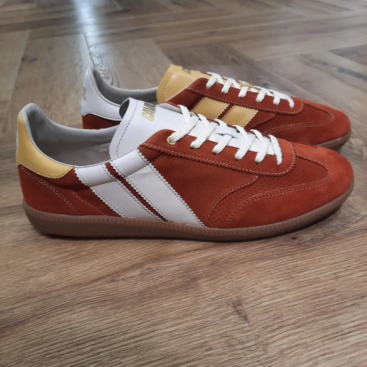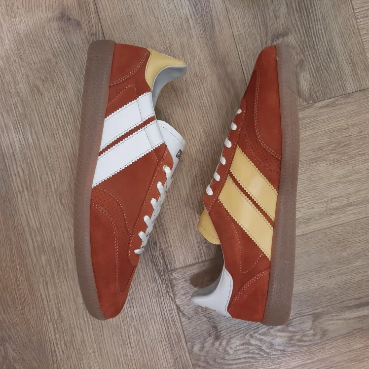 Les chaussures Pulse Sunset Copper sont des sneakers asymétriques de la marque Caval qui fusionnent un look sportswear à l’élégance des paires de handball des années 90. Chaque détail, du bout golf, à la plaque perforée, en passant par les découpes croquet, le cousu Strobel, le lacet tricot et les semelles en gomme affûtées, évoque un style rétro-preppy sophistiqué. Souples et flexibles, elles promettent confort et allure pour toutes vos tenues. Avec 7 différences uniques à découvrir, les Pulse ne sont pas de simples sneakers, c’est un bond en avant pour votre style au quotidien.