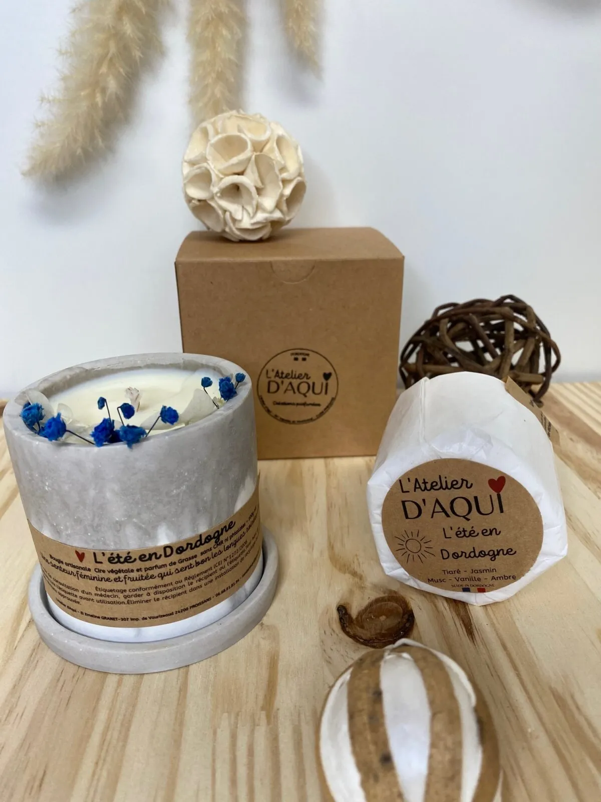 Recharge bougie parfumée fabriquée à la main en Dordogne pour pot en jesmonite 180g ou tout autre pot compatible en dimensions. Mèche en coton non traité et âme en papier.