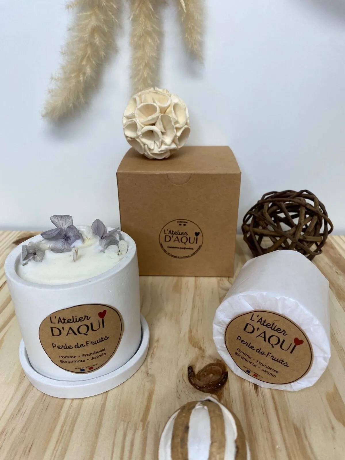 Recharge bougie parfumée fabriquée à la main en Dordogne pour pot en jesmonite 180g ou tout autre pot compatible en dimensions. Mèche en coton non traité et âme en papier.