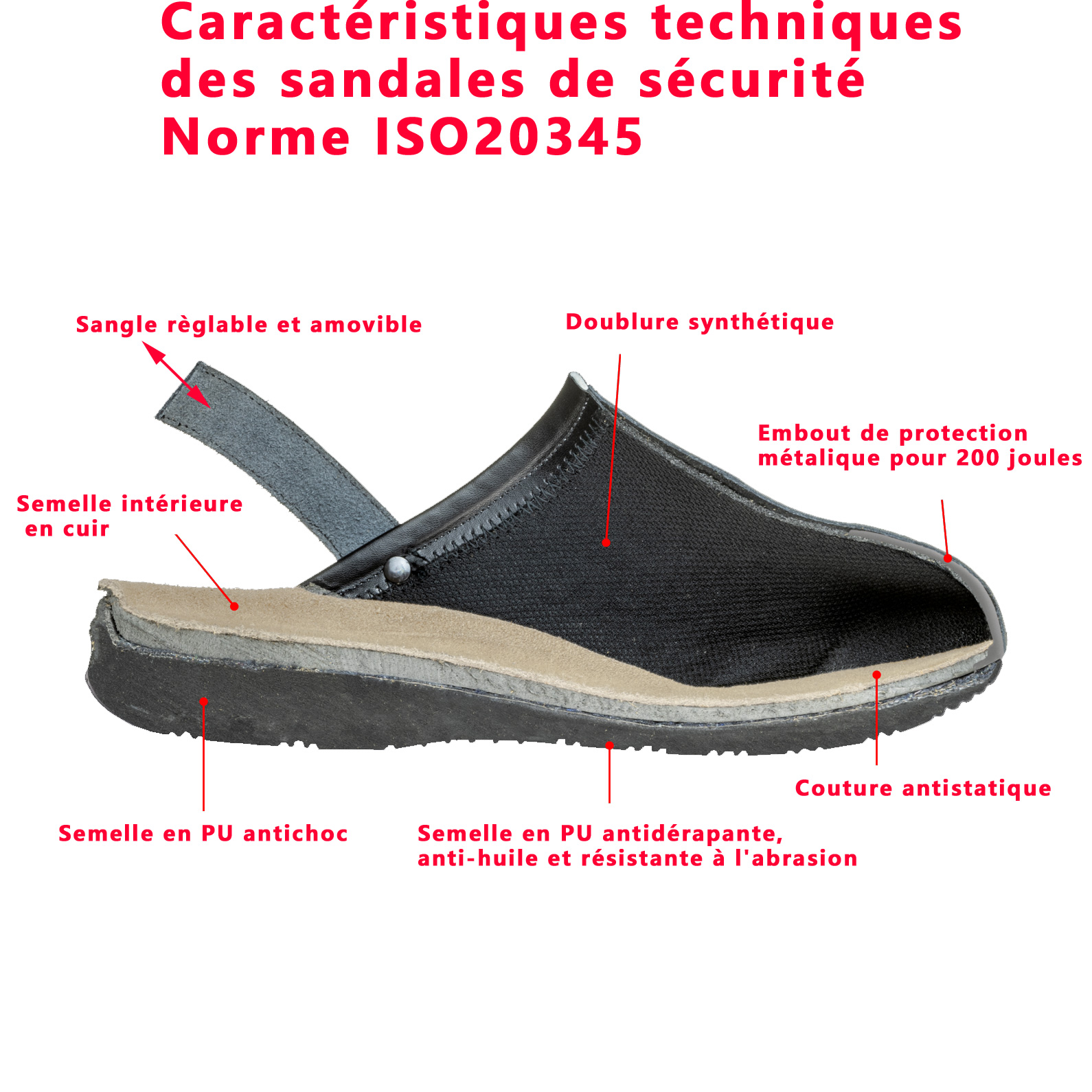Sandale muni d’un embout en acier supportant 200 kg