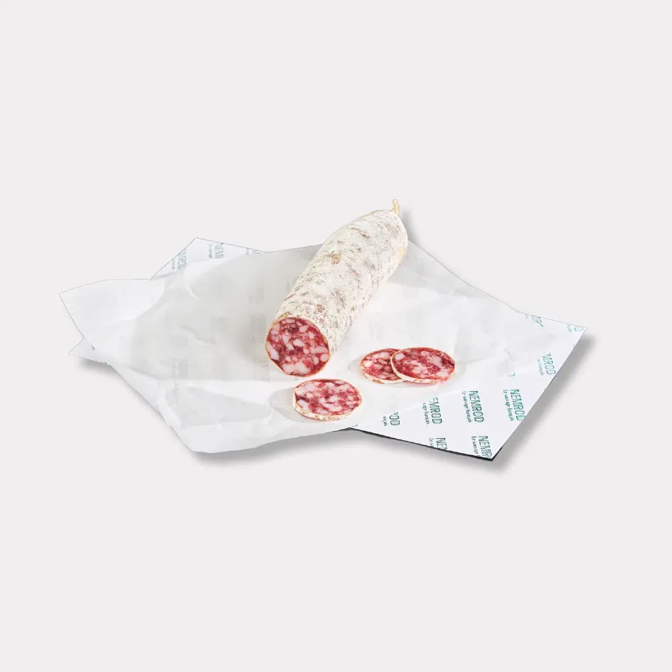 Conseil de dégustation : laissez reposer le saucisson à température ambiante 30 minutes avant de le couper, pour profiter pleinement de sa texture.