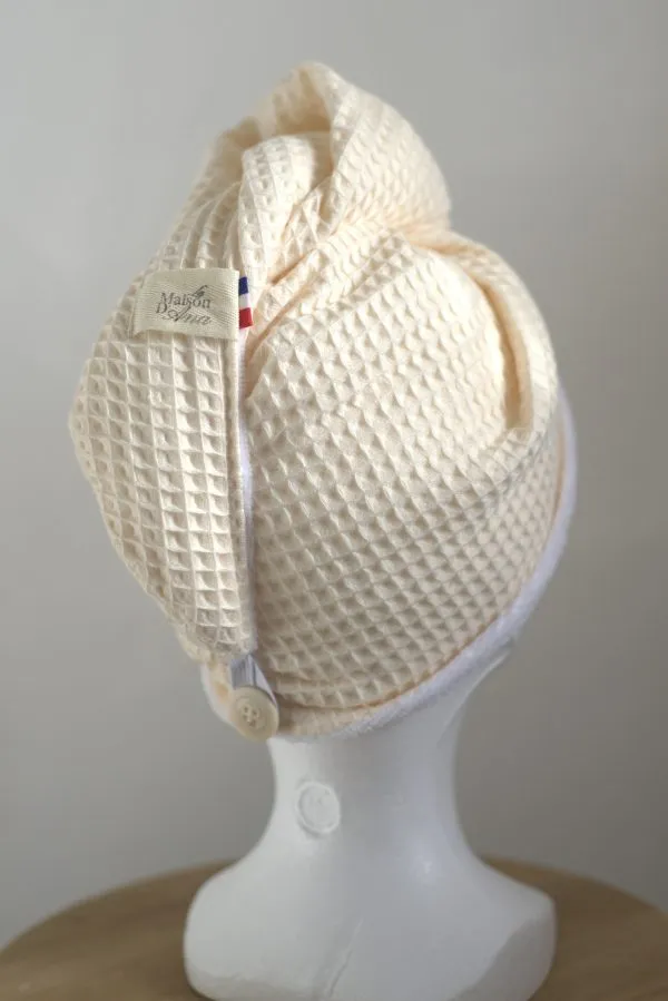 Serviette à cheveux fabriquée artisanalement en Dordogne.