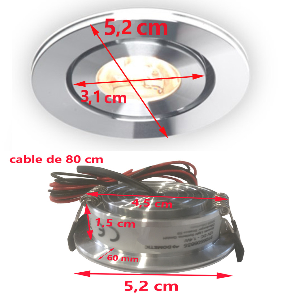 Spot écairage L100RM Dometic à installer dans un troup de 47 mm