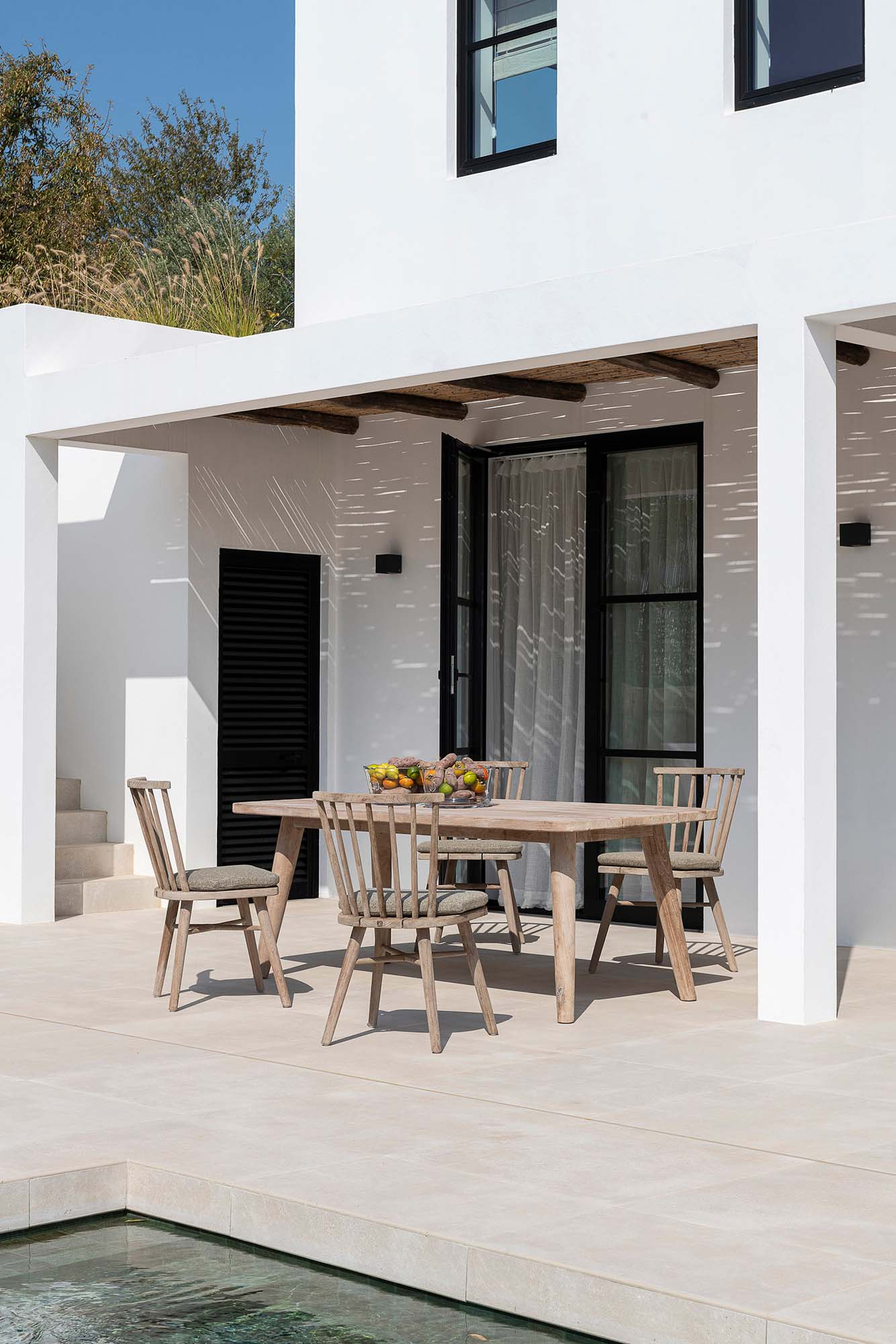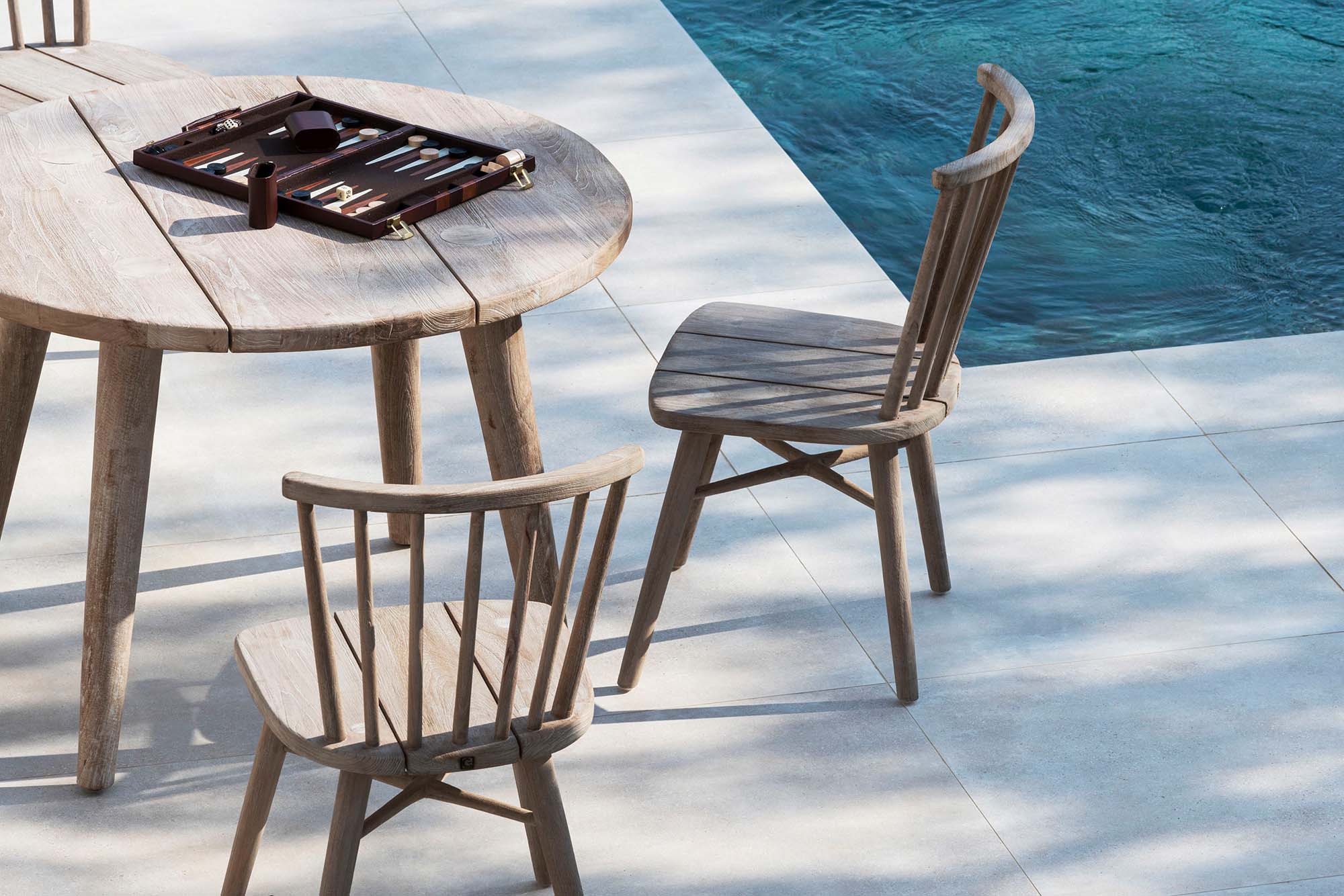 Table CAROL en teck naturel gris de chez GOMMAIRE.
