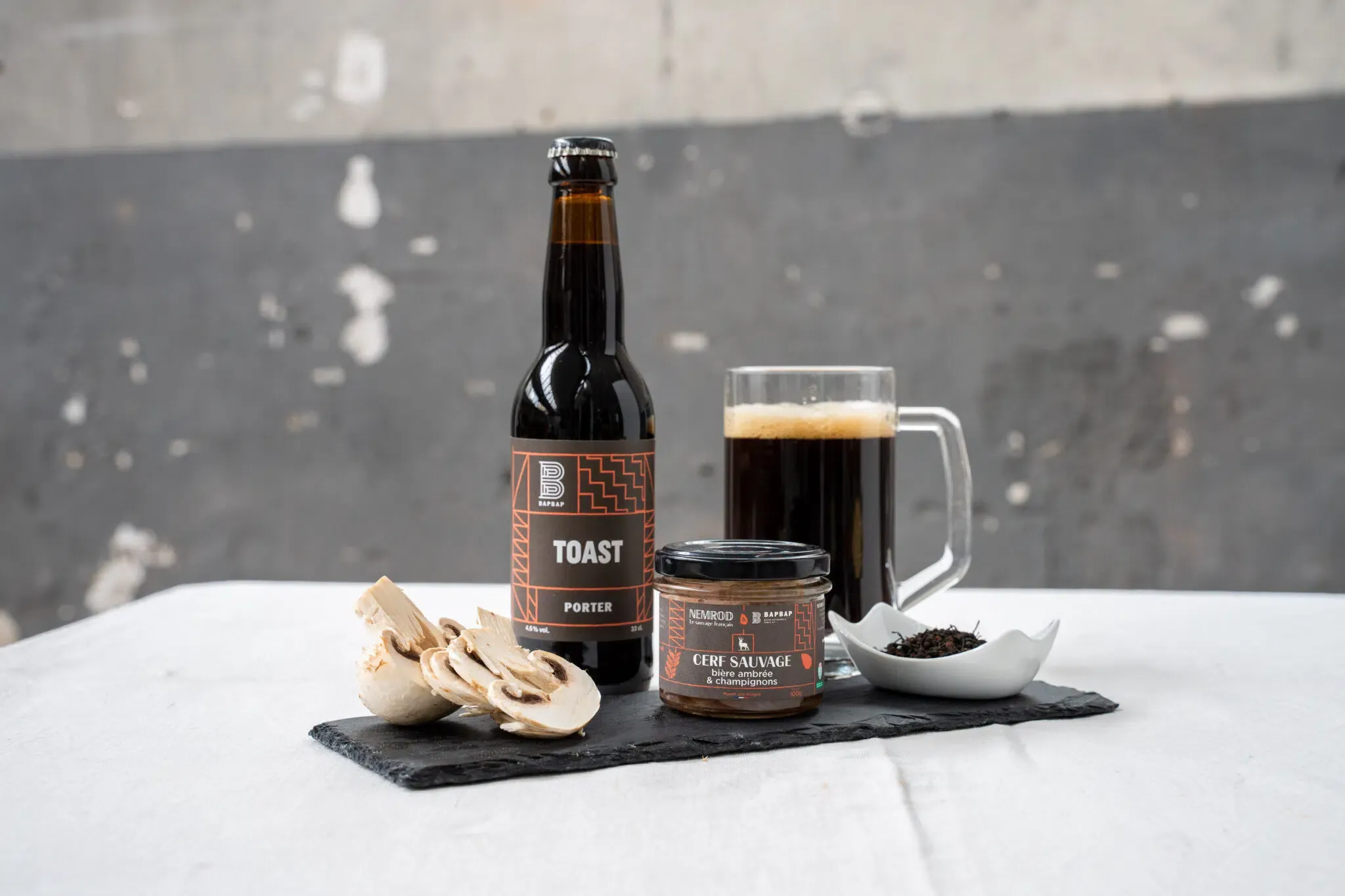 Association originale : cerf, bière brune & champignons