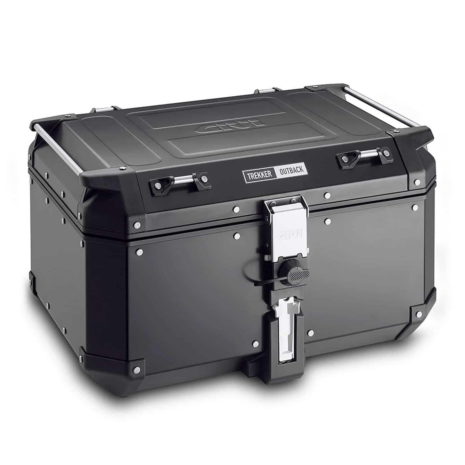 Le Givi Trekker Outback 58 est un Top Case haut de gamme disposant d’une large capacité d’emport : 58 litres. Sa caisse est conçue en aluminium, il est très robuste. Ces renforts angulaires et ses profils sont en technopolymères. Ses renforts internes sont également en aluminium. Complétant l’étanchéité de l’ensemble, ses rivets sont munis de joints toriques. Il peut recevoir aisément deux casques intégraux ou modulables. Équipé de crochets en acier inoxydable sur son couvercle, on pourra également y fixer un sac supplémentaire de manière sécurisée. Sa serrure comporte un cache anti poussière. Le fond de ce Top Case reçoit un tapis anti choc. Il peut supporter une charge maximale de 10 kilos. Et mesure 55 cm de long, 45 cm de diagonale et 32 cm de haut. A noter : nécessaire à l’installation sur votre Top-Case, sa platine est vendue séparément.