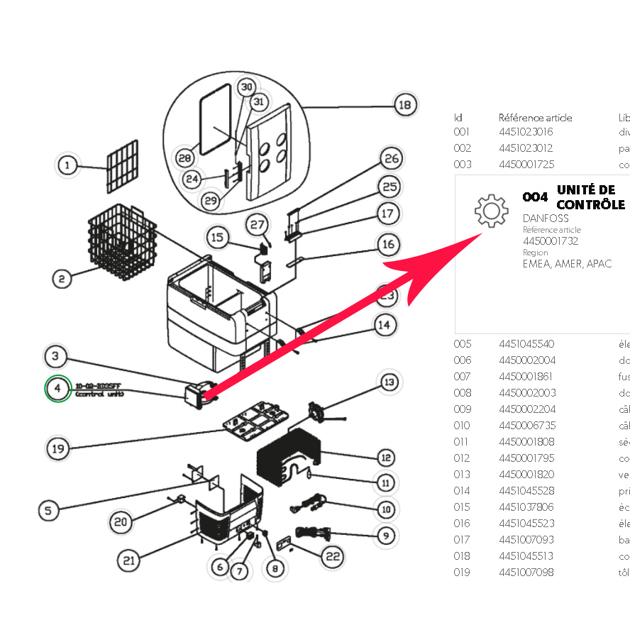 Pour vérifier si votre appareil comporte bien cette unité de controle, merci de nous contacter et munissez vous pour vérifier la compatibilité de votre numéro de produit de votre appareil Dometic ou Waeco (qui se trouve sur l’étiquette signalétique).